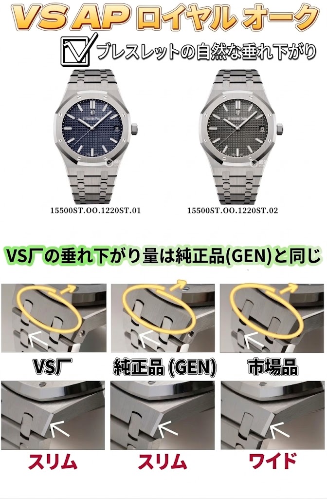 しかし、その時代は正式に終わりました。ロレックスやオメガの最高峰モデルを手掛ける絶対的王者、VS工場が、ついにAPの領域に参入しました。純正仕様に完全に統合された画期的な「丹東4302ムーブメント」を搭載したVS工場のAP 15500は、まさに傑作と呼ぶにふさわしい仕上がりです。本記事では、この2026年最新モデルが他を完全に置き去りにする「7つの決定的なアップグレード」を徹底解剖します。