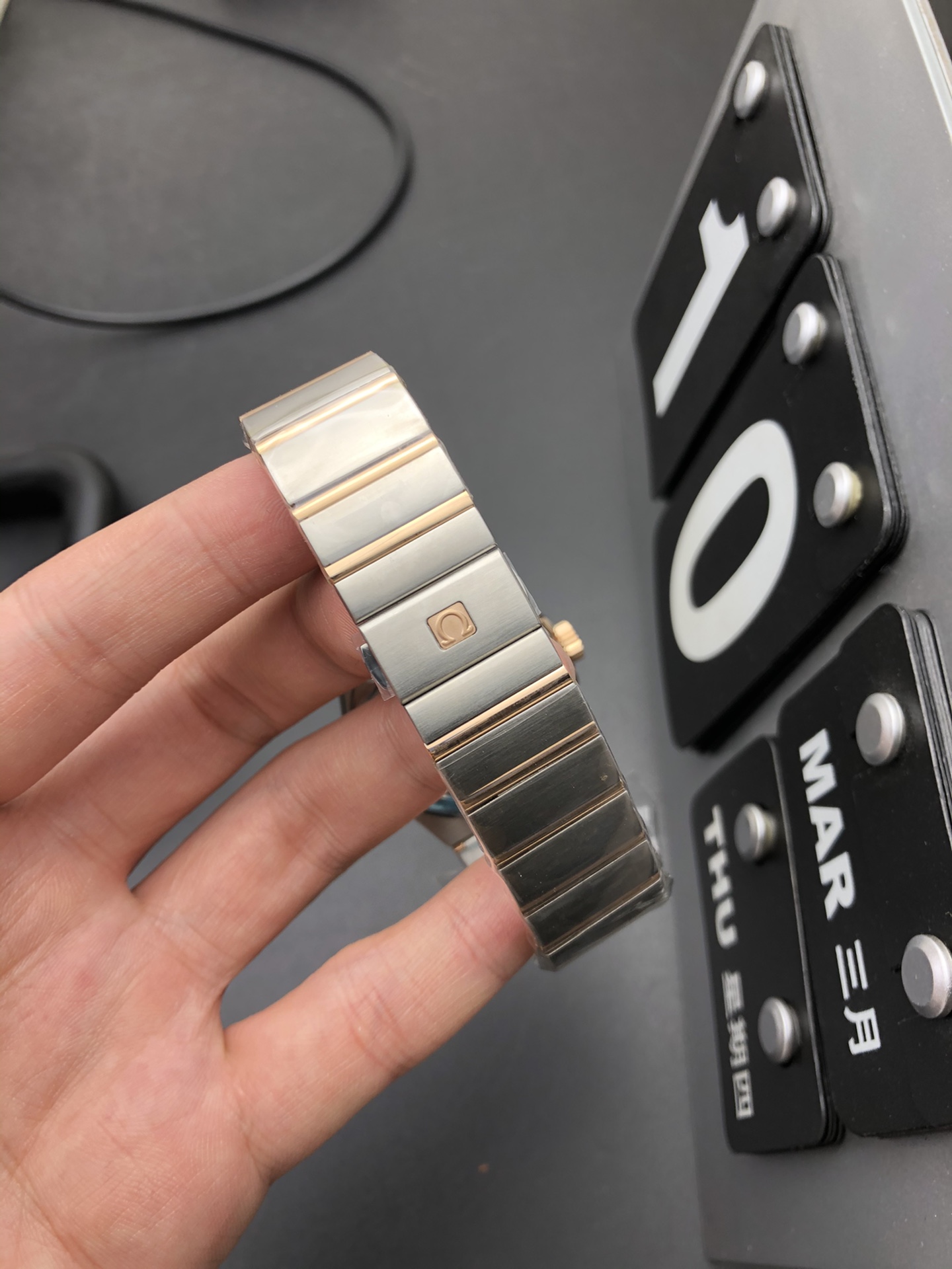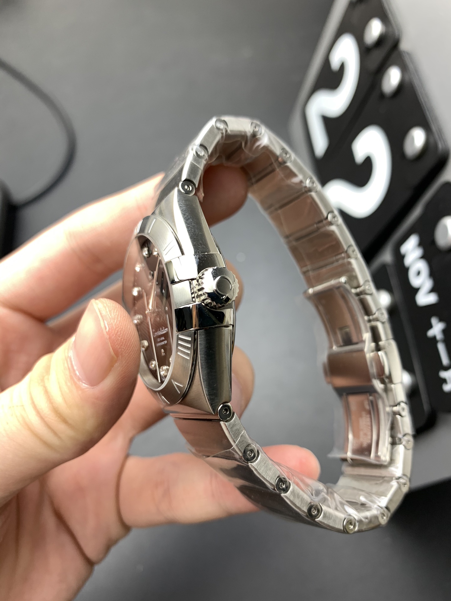 象徴的なコンステレーションのアーキテクチャ: 38mmのステンレススチールケースは、コンステレーション ファミリーを定義する伝説的なデザイン要素を備えています。VSFは、サファイアクリスタルをつかむ4つのポリッシュ仕上げの「爪(グリフ)」を完全に複製しており、ローマ数字のベゼルの細かいサテンブラシ仕上げと流れるようなケースのラインに対して美しくコントラストをなしています。