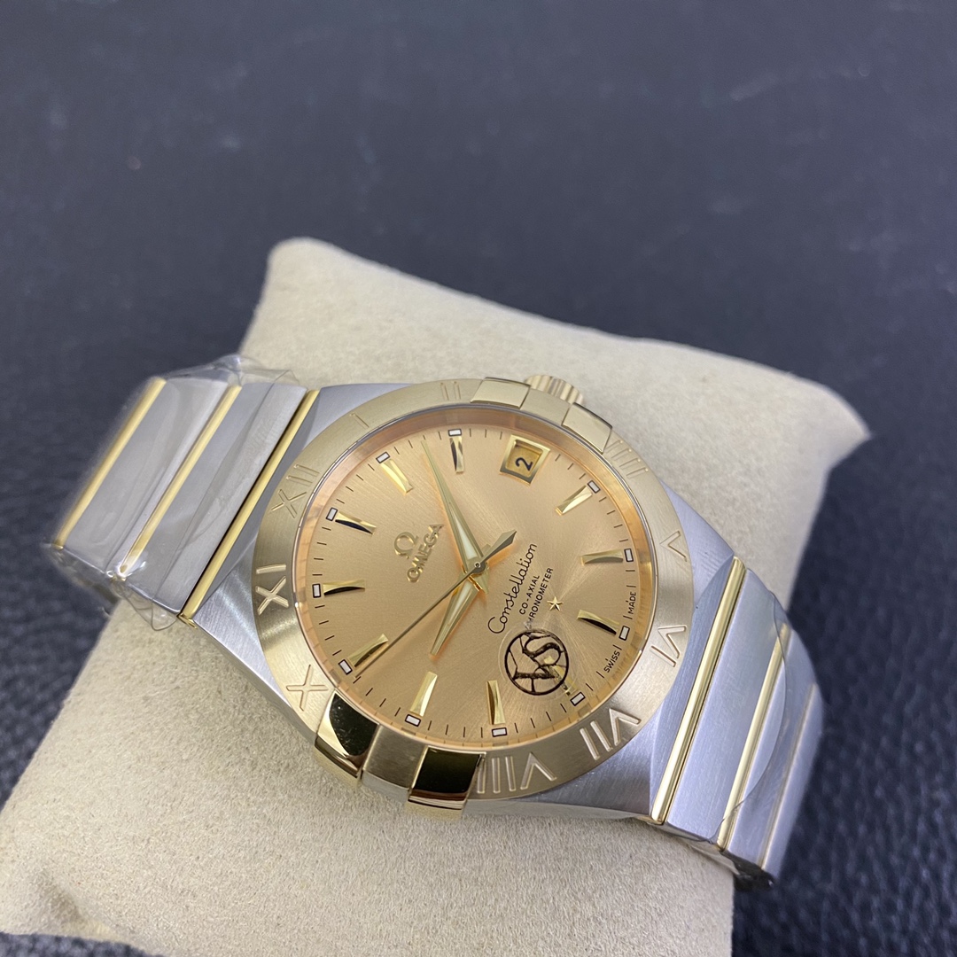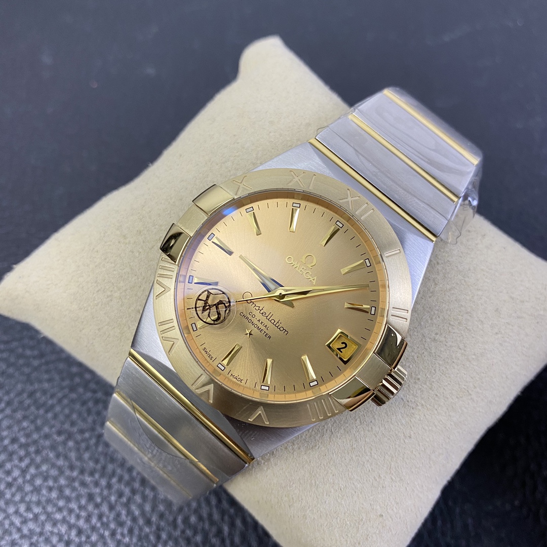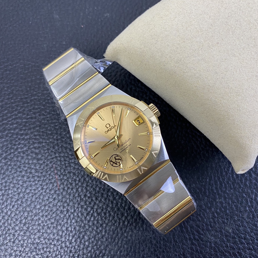 オメガ コンステレーション (リファレンス 123.20.38.21.08.001) は、象徴的な建築デザインと非常に豊かでクラシックなラグジュアリーの美学をブレンドした、時計製造のエレガンスの時代を超越したシンボルです。オメガ スーパークローンの誰もが認めるマスターである伝説的なVSファクトリー(VSF)によって完璧に実行されたこの1:1レプリカは、本物の印象的な存在感と洗練されたプロポーションを捉えています。完璧なサイズの38mmステンレススチールケースに収められ、輝く18Kイエローゴールドメッキのベゼルに取り付けられた、コレクションの特徴的な「爪(グリフ)」を備えています。この特定のリファレンスの絶対的な際立った特徴は、ケースのハードウェアとシームレスに一致し、まとまりのある豪華な外観を作り出す、輝くサンレイブラシ仕上げのシャンパンゴールド文字盤です。伝説的なツートンのモノラン統合型ブレスレットにマウントされたこの時計は、究極の洗練されたデイリーウェアです。業界をリードする丹東DD8500 1:1コーアクシャルクローンムーブメントを搭載し、完璧な信頼性、独立したジャンピングアワー針、驚くべき装飾の精度を提供します。