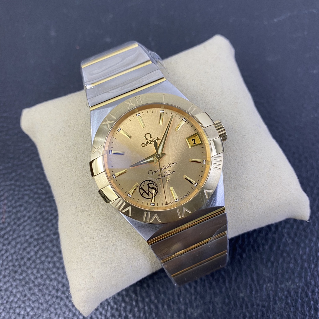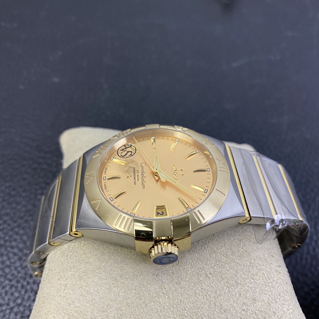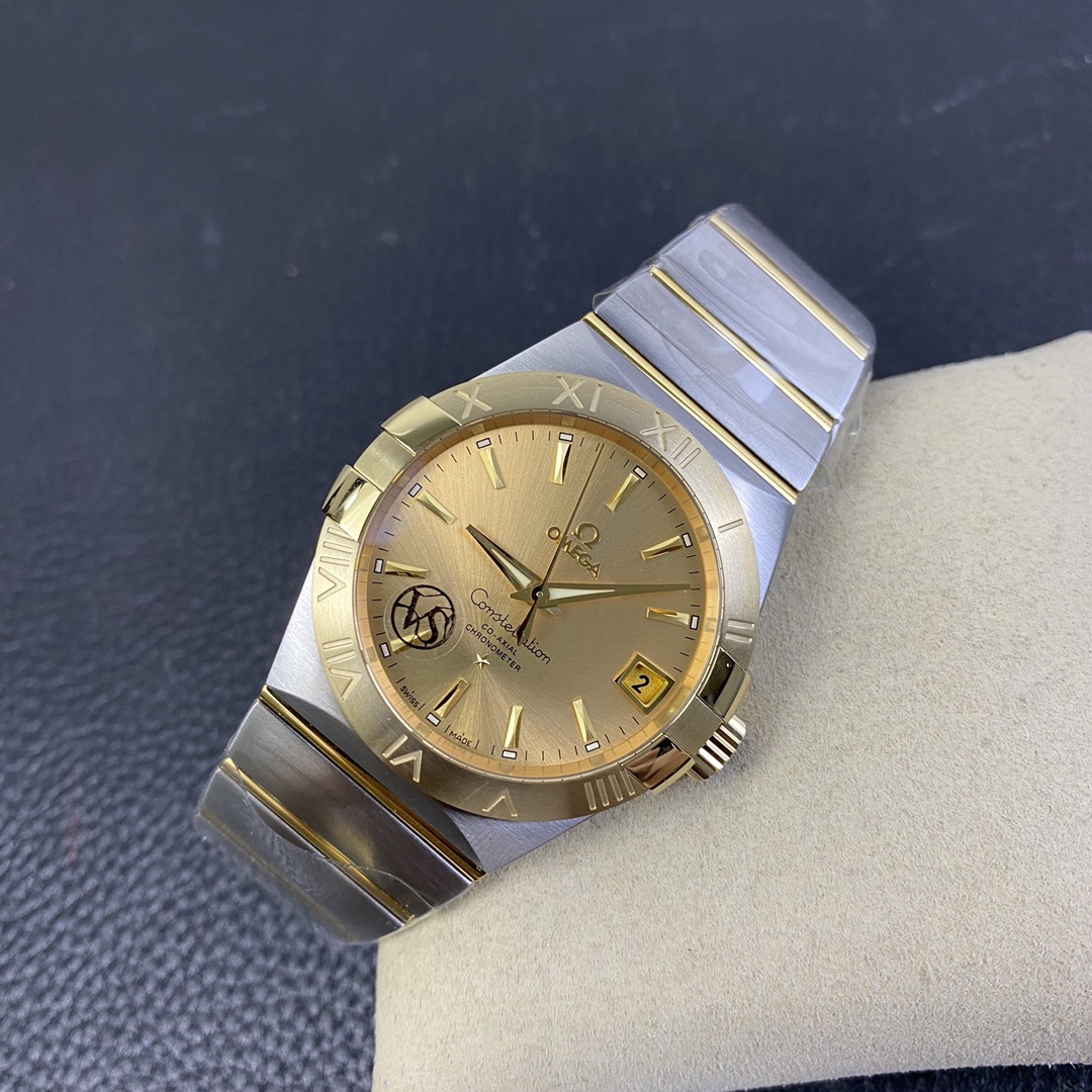 オメガ コンステレーション (リファレンス 123.20.38.21.08.001) は、象徴的な建築デザインと非常に豊かでクラシックなラグジュアリーの美学をブレンドした、時計製造のエレガンスの時代を超越したシンボルです。オメガ スーパークローンの誰もが認めるマスターである伝説的なVSファクトリー(VSF)によって完璧に実行されたこの1:1レプリカは、本物の印象的な存在感と洗練されたプロポーションを捉えています。完璧なサイズの38mmステンレススチールケースに収められ、輝く18Kイエローゴールドメッキのベゼルに取り付けられた、コレクションの特徴的な「爪(グリフ)」を備えています。この特定のリファレンスの絶対的な際立った特徴は、ケースのハードウェアとシームレスに一致し、まとまりのある豪華な外観を作り出す、輝くサンレイブラシ仕上げのシャンパンゴールド文字盤です。伝説的なツートンのモノラン統合型ブレスレットにマウントされたこの時計は、究極の洗練されたデイリーウェアです。業界をリードする丹東DD8500 1:1コーアクシャルクローンムーブメントを搭載し、完璧な信頼性、独立したジャンピングアワー針、驚くべき装飾の精度を提供します。