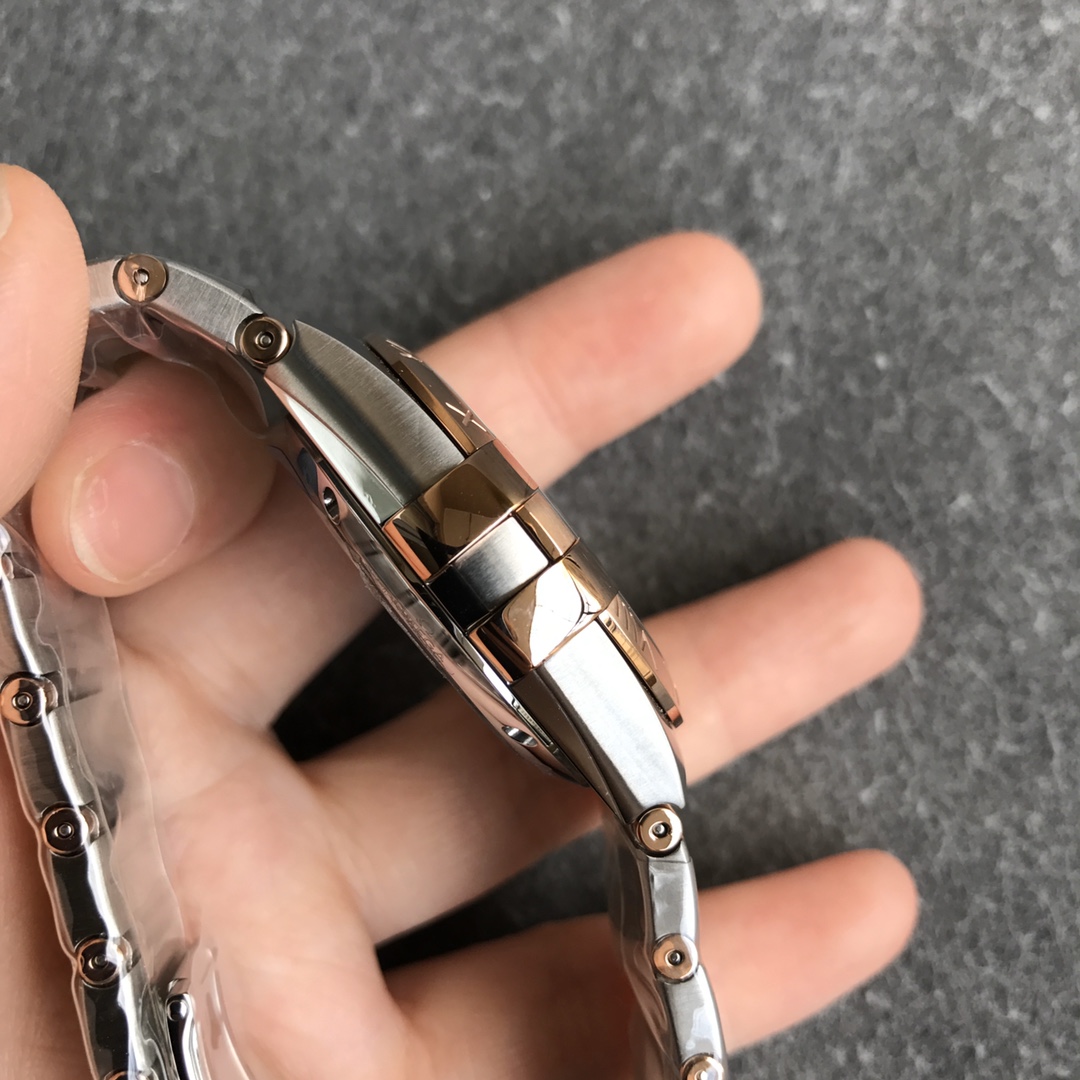 オメガ コンステレーション (リファレンス 123.20.38.21.03.002) は、象徴的な建築デザインとモダンでハイコントラストなカラーパレットを見事に融合させた、時計製造のエレガンスの時代を超越したシンボルです。オメガ スーパークローンの誰もが認めるマスターである伝説的なVSファクトリー(VSF)によって完璧に実行されたこの1:1レプリカは、本物の印象的な美学と洗練されたプロポーションを捉えています。完璧なサイズの38mmステンレススチールケースに収められ、輝く18Kセドナ(ローズ)ゴールドメッキのベゼルに取り付けられた、コレクションの特徴的な「爪(グリフ)」を備えています。この特定のリファレンスの絶対的な際立った特徴はその文字盤です。複雑な十字型の「ロゼンジ(ひし形)」テクスチャーで飾られた壮観で深いブルーのキャンバスで、温かみのあるローズゴールドのハードウェアによって完璧に区切られています。伝説的なツートンのモノラン統合型ブレスレットにマウントされたこの時計は、究極の洗練されたデイリーウェアです。業界をリードする丹東DD8500 1:1コーアクシャルクローンムーブメントを搭載し、完璧な信頼性、独立したジャンピングアワー針、驚くべき装飾の精度を提供します。