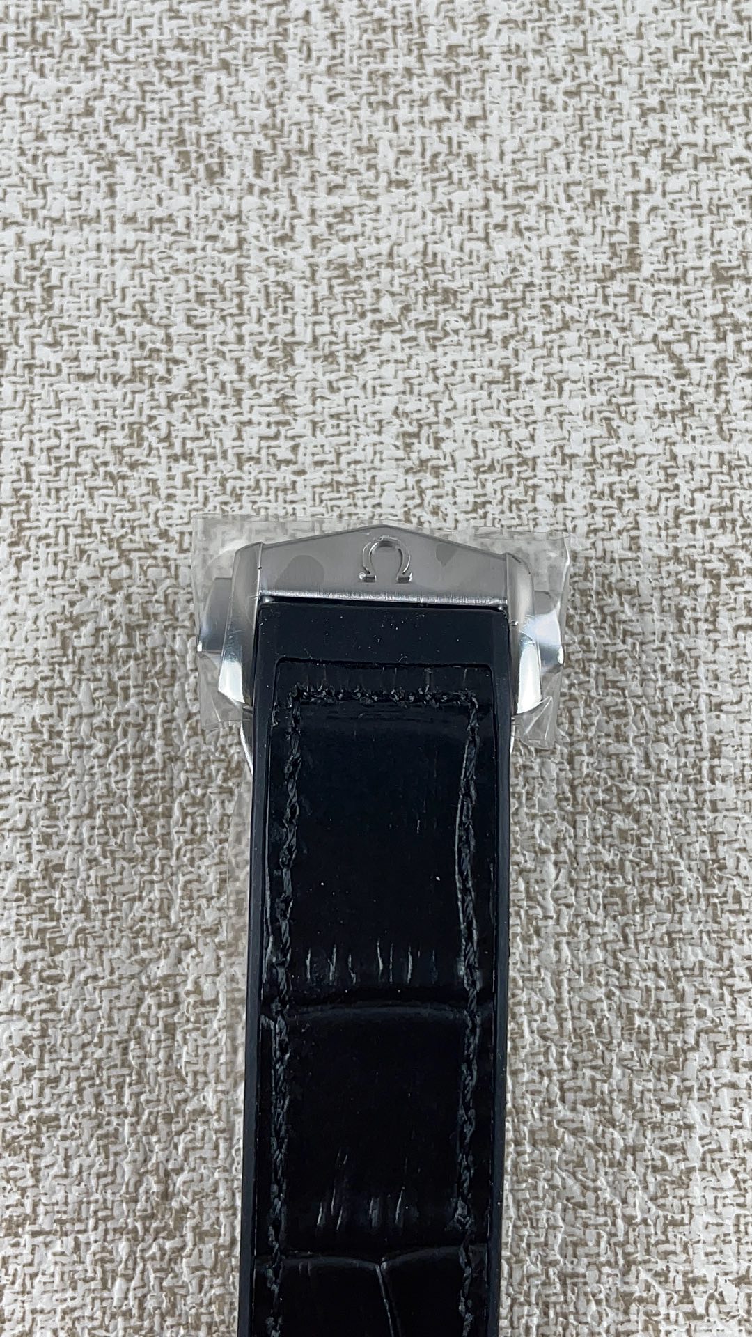 ハイブリッド レザー/ラバーストラップ: フォーマルなエレガンスと日常の耐久性の両方を確保するために、この時計は高度に専門化されたハイブリッドストラップにマウントされています。上部は豪華なブラックのアリゲーターパターンのレザーで作られていますが、下部には革を汗から保護し、あらゆる気候で最大限の快適さを確保するために溝付きのブラックのラバーの裏地が付いています。シームレスなサテンおよびポリッシュ仕上げのステンレススチール製フォールドオーバー デプロイアント クラスプで固定されています。