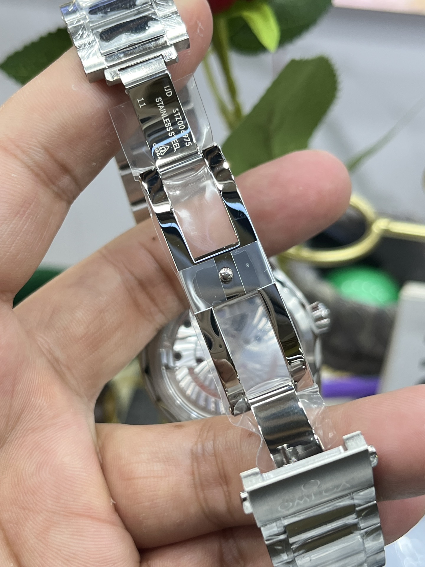 洗練されたステンレススチール ブレスレット: 時計の汎用性の高い性質に完全に一致するように、VSFはヘビーデューティーでありながらエレガントな3連のステンレススチールブレスレットを完璧に複製しました。高度に研磨された中央リンクを細かいサテンブラシ仕上げの外側リンクで縁取っており、動きのたびに光を見事に捉えます。シームレスな隠しダブルデプロイアント バタフライクラスプで固定されています。