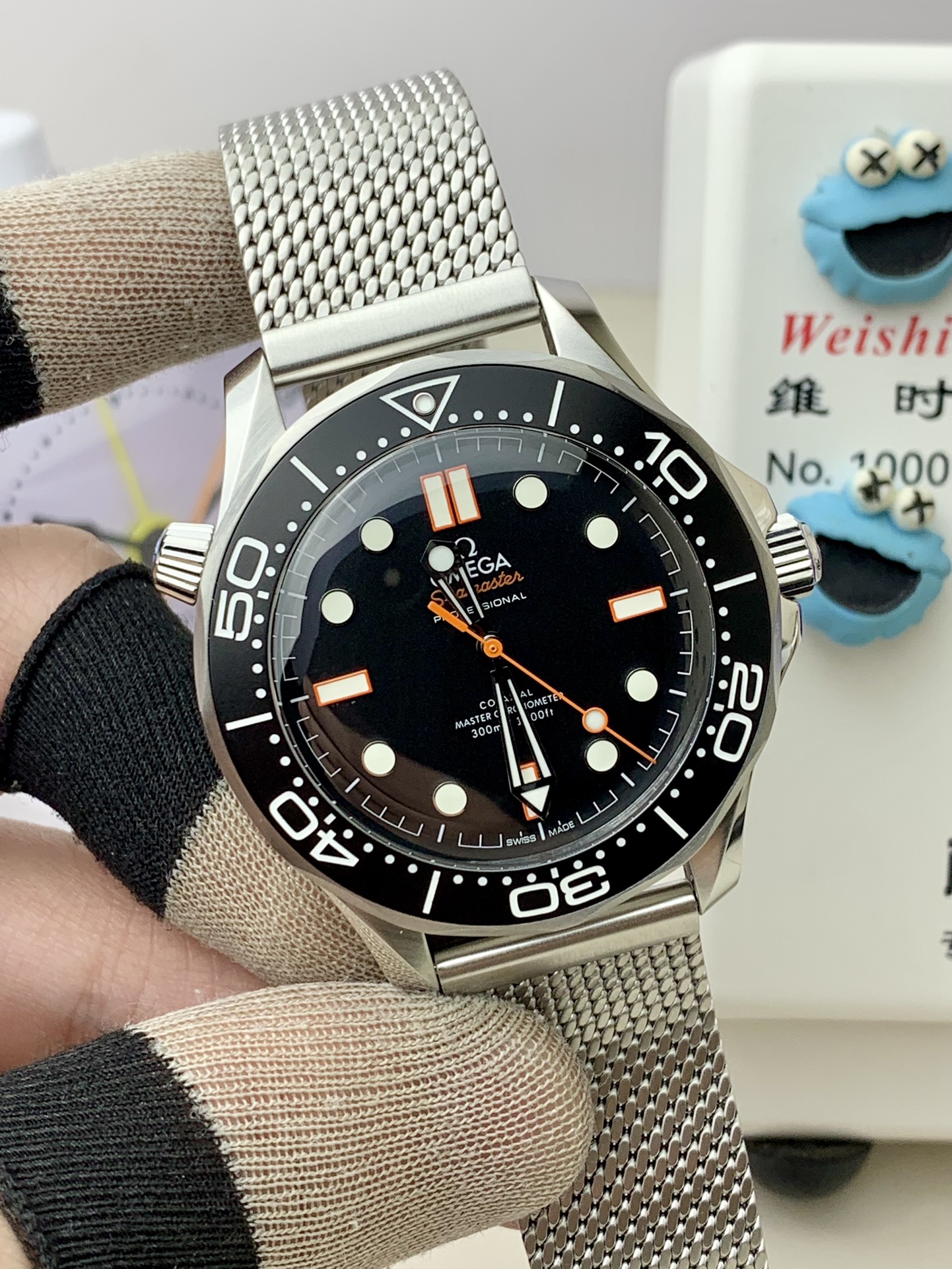 VSファクトリー製 オメガ シーマスター ダイバー300M 42mm 007エディション「ノー・タイム・トゥ・ダイ」チタンメッシュ (210.90.42.20.01.001) 1:1スーパークローン – 丹東8806ムーブメント搭載