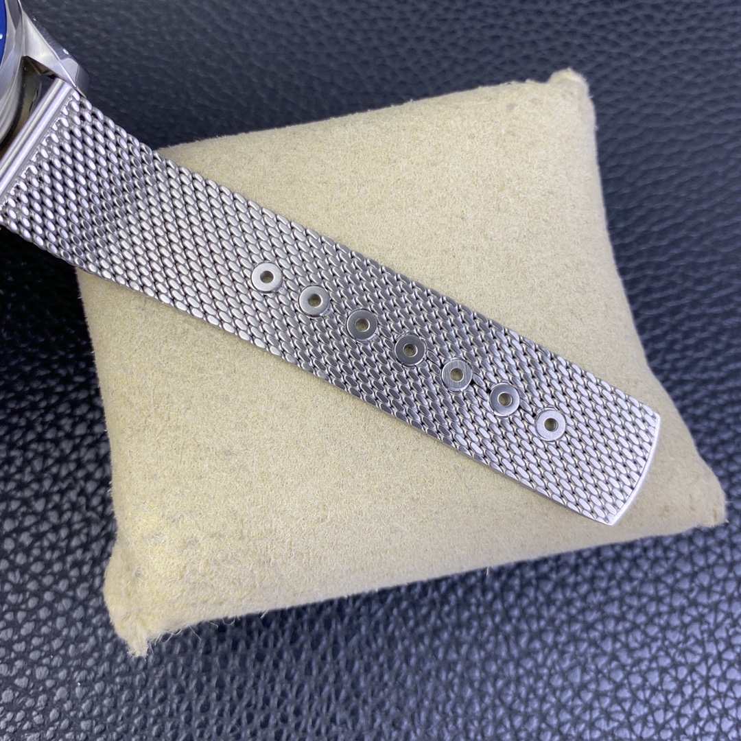 ステンレススチール メッシュ ブレスレット: VSFは、今回はチタンではなくヘビーデューティーな316Lステンレススチールでレンダリングされた複雑なミラネーゼ メッシュ ブレスレットを美しく複製しました。しなやかで通気性があり、手首に非常に快適にフィットし、どんな任務中でもロックされたままになるように高度に設計されたフォールドオーバー(折りたたみ式)調節可能なクラスプで固定されています。