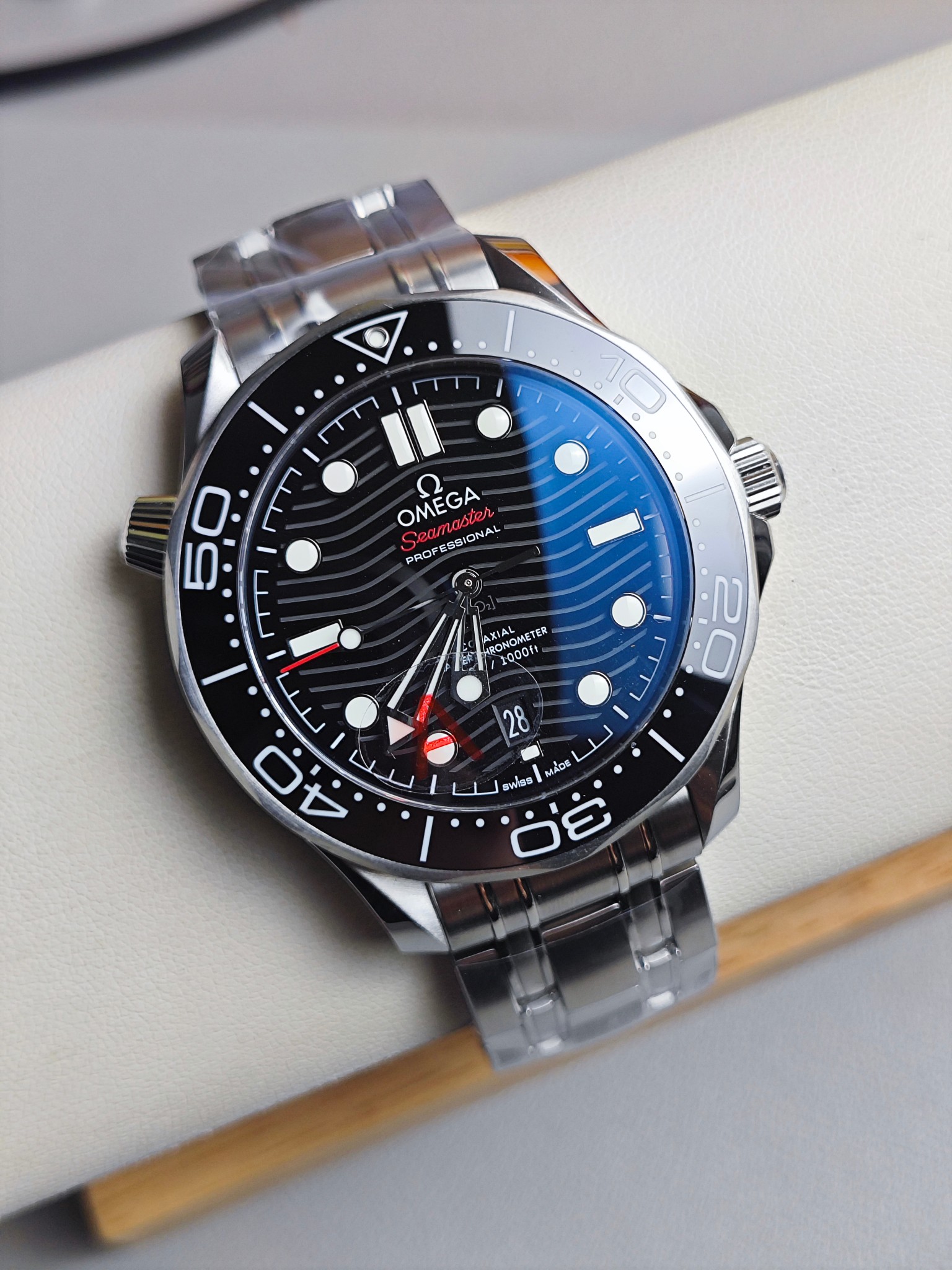 オメガ シーマスター ダイバー300M (リファレンス 210.30.42.20.01.001) は、頑丈なプロの機能と洗練された日常のエレガンスの完璧なバランスを提供する、典型的なモダンラグジュアリー ダイブウォッチです。オメガのスーパークローンの絶対的なマスターとして世界的に認められている、伝説的なVSファクトリー(VSF)によって完璧に実行されたこの1:1レプリカは、本物の海のアイコンのあらゆるニュアンスのディテールを捉えています。堅牢な42mmのステンレススチールケースに収められ、レーザー彫刻された波(ウェーブ)で飾られた高度に研磨されたブラックセラミック [ZrO2] 文字盤と、一致する光沢のあるブラックセラミックベゼルによって完璧に縁取られています。複雑な、完全サテンおよびポリッシュ仕上げの5連シーマスターブレスレットにマウントされたこの時計は、あらゆるコレクションの絶対的な基礎です。業界をリードする丹東DD8800 1:1コーアクシャルクローンムーブメントを搭載し、完璧な信頼性、6時位置のシームレスな日付機能、驚くべき装飾の精度を提供します。