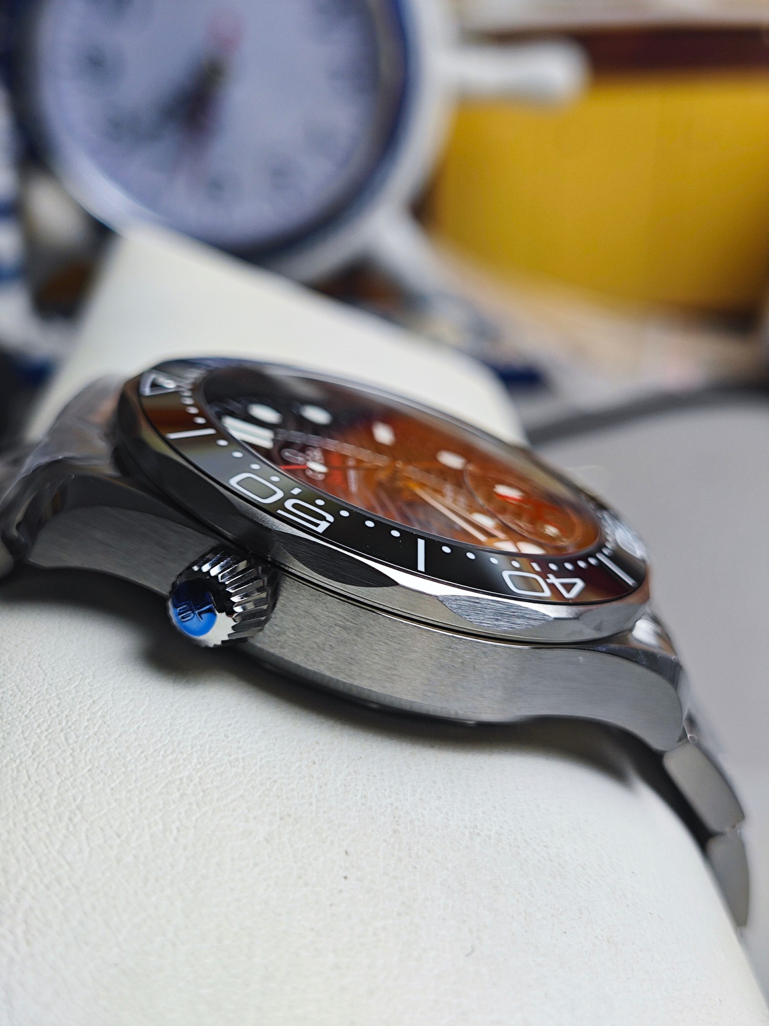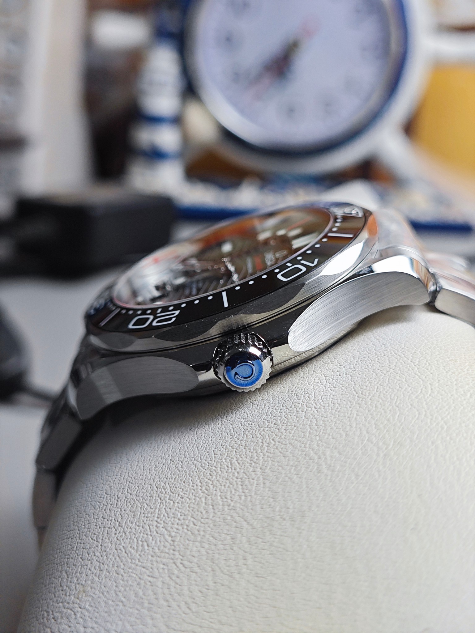 最高傑作のDD8800 コーアクシャルムーブメント: 内部で鼓動するのは、壮観な丹東DD8800スーパークローンです。サファイアクリスタルのエキシビション(シースルー)ケースバックを通して見ることができ、本物のオメガムーブメントとまったく同じように装飾されています。特徴的な黒くなったネジ、特殊な香箱、アラベスクの独特のジュネーブウェーブを特徴とし、6時位置にきれいに配置されたカラーマッチしたブラックの日付ホイールを完璧に駆動します。