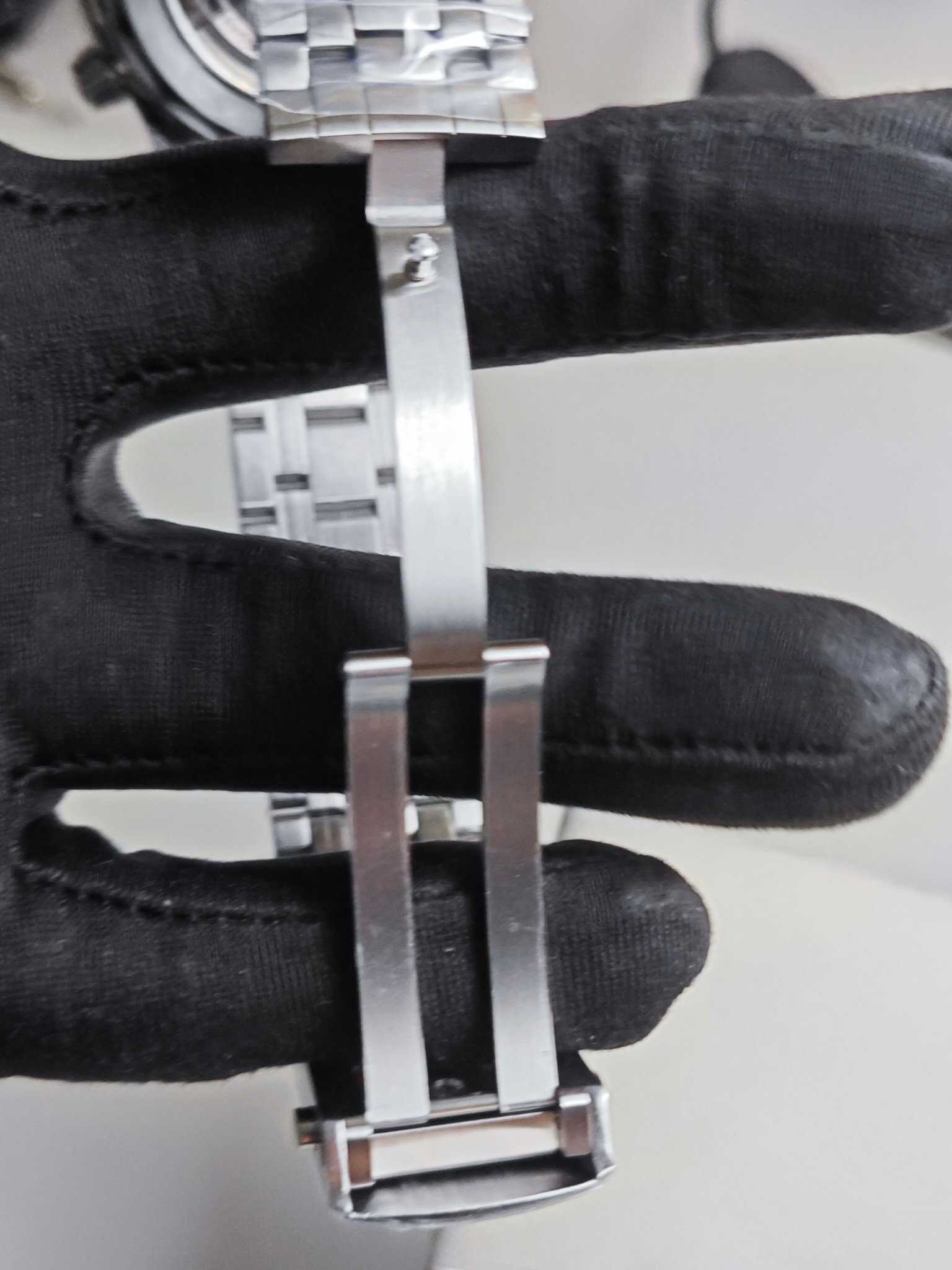 光沢のあるブラック セラミックベゼル: 逆回転防止ベゼルは、非常に傷に強いブラックセラミックで作られており、文字盤の深く海のような美学をシームレスに拡張しています。VSFは、ダイビングスケールに使用される鮮やかなホワイトエナメルの充填を完璧に複製し、数字が鮮明なままであり、時間の経過とともに色あせたり、黄色くなったり、変色したりしないようにしています。