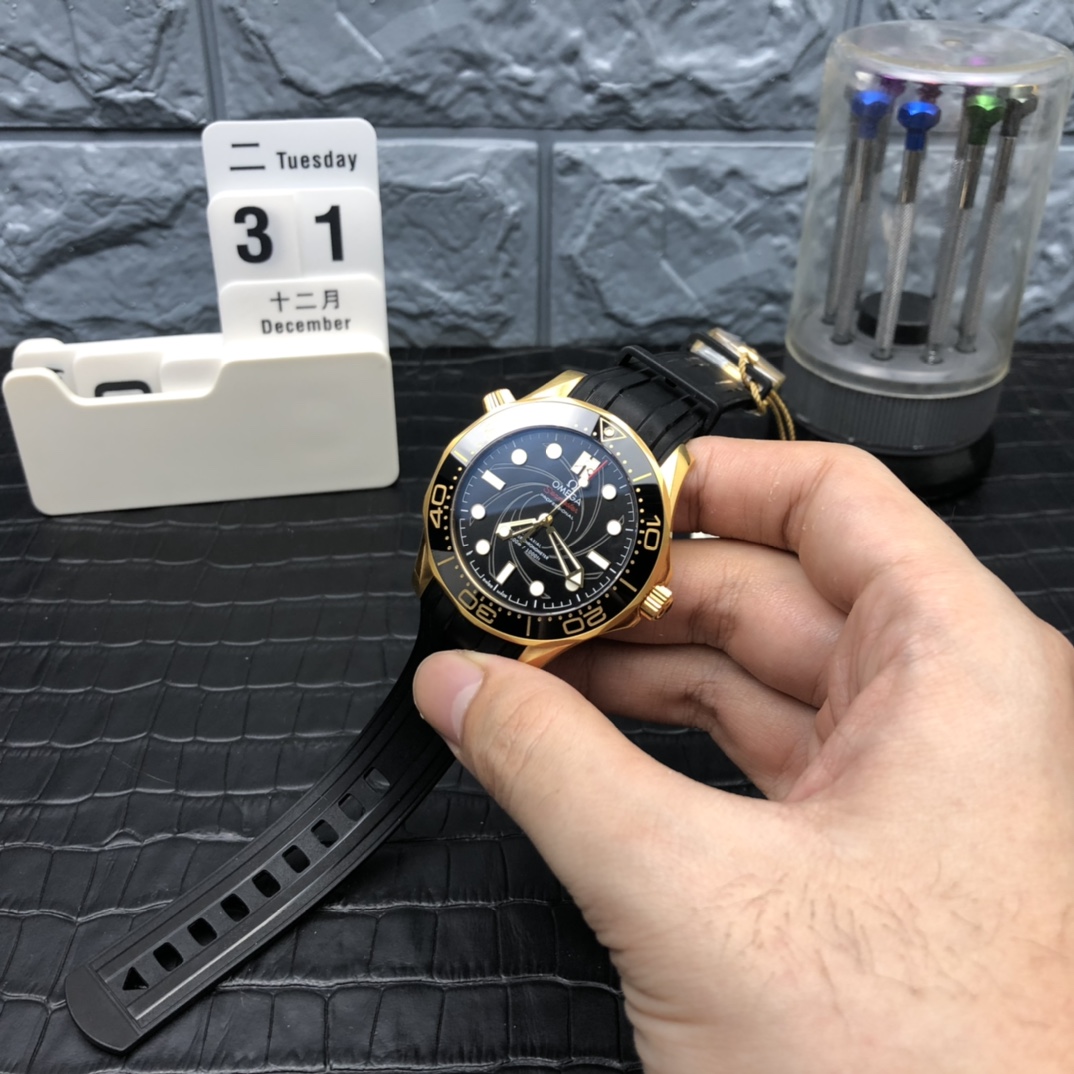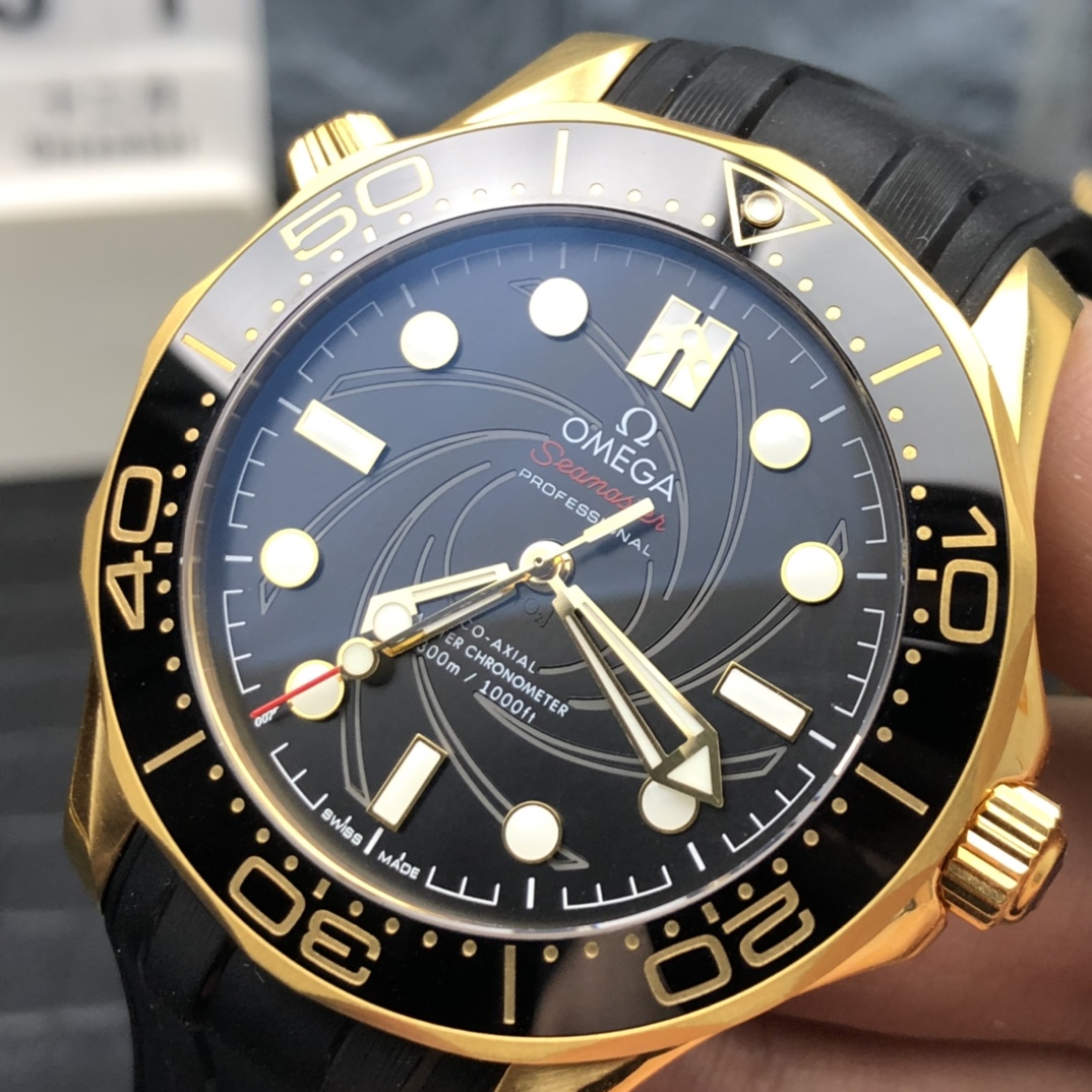 オメガ シーマスター ダイバー300M ジェームズ・ボンド 50周年記念 (リファレンス 210.62.42.20.01.001) は、世界で最も有名な秘密情報員への究極のオマージュであり、もともとは非常に排他的で限定された2本時計セットの半分としてリリースされました。オメガ スーパークローンの誰もが認めるマスターである伝説的なVSファクトリー(VSF)によって完璧に実行されたこの1:1レプリカは、本物の豪華な重量と隠されたディテールを捉えています。豊かな18Kイエローゴールドが厚くメッキされた堅牢な42mmケースに収められ、象徴的な007のガンバレル(銃身)のらせんがレーザー彫刻された印象的なブラックのセラミック文字盤を備えています。シームレスに統合されたブラックのラバーストラップにマウントされたこの時計は、フォーマルなラグジュアリーと戦術的な能力の究極のブレンドです。業界をリードする丹東8807 1:1コーアクシャル ノンデイト クローンムーブメントを搭載し、完璧な信頼性、完璧な文字盤の対称性、驚くべき装飾の精度を提供します。