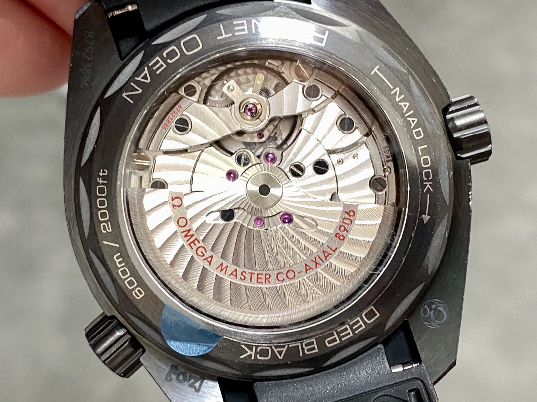 最高傑作のDD8906 コーアクシャルGMTムーブメント: 内部で鼓動するのは、壮観な丹東DD8906スーパークローンです。これは真の「トラベラーズGMT」アーキテクチャです。本物のオメガとまったく同じように、リューズを最初の位置に引いて、秒針を止めたりGMT針を動かしたりすることなく、ローカルの時針を1時間単位で前後に「ジャンプ」させることができます。タイムゾーンを越えるのに最適です。サファイアクリスタルのケースバックを通して見ることができ、黒くなったネジとアラベスクのジュネーブウェーブで完璧に装飾されています。