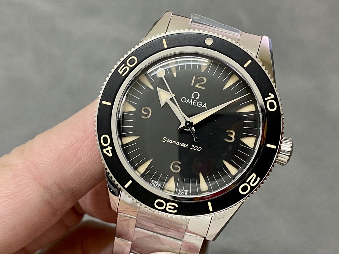 VSファクトリー製 オメガ シーマスター 300 ヘリテージ 41mm ブラック サンドイッチ文字盤 ステンレススチール ブレスレット (234.30.41.21.01.001) 1:1スーパークローン - 丹東8912ムーブメント搭載