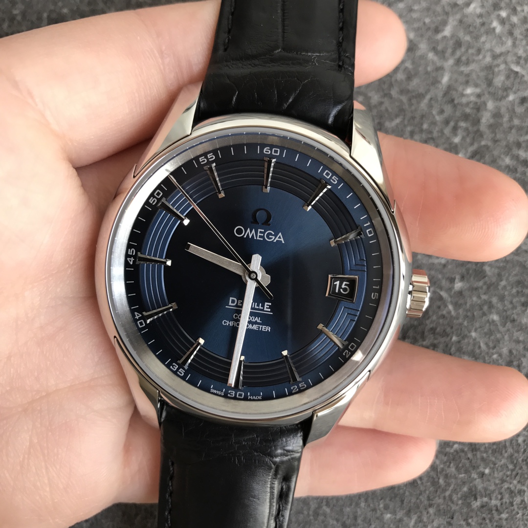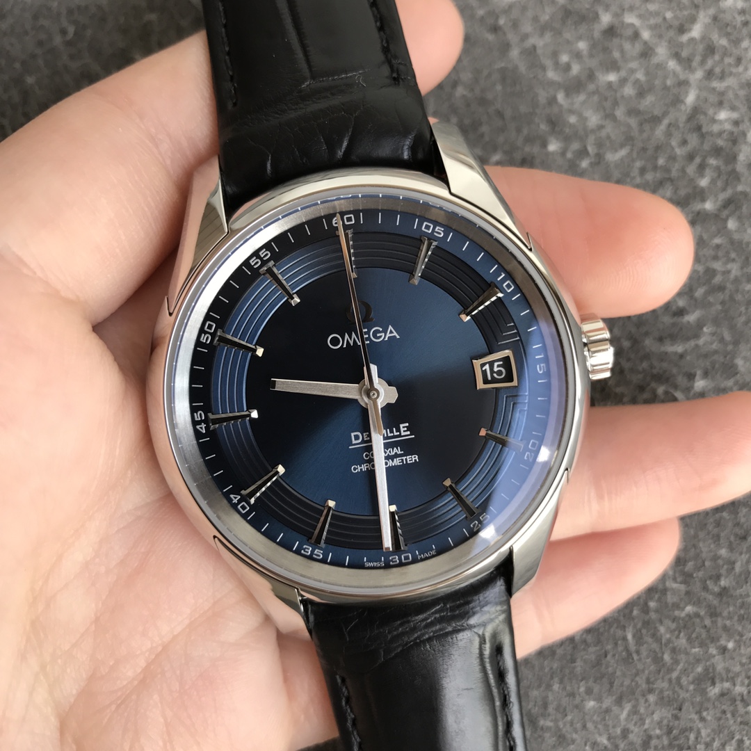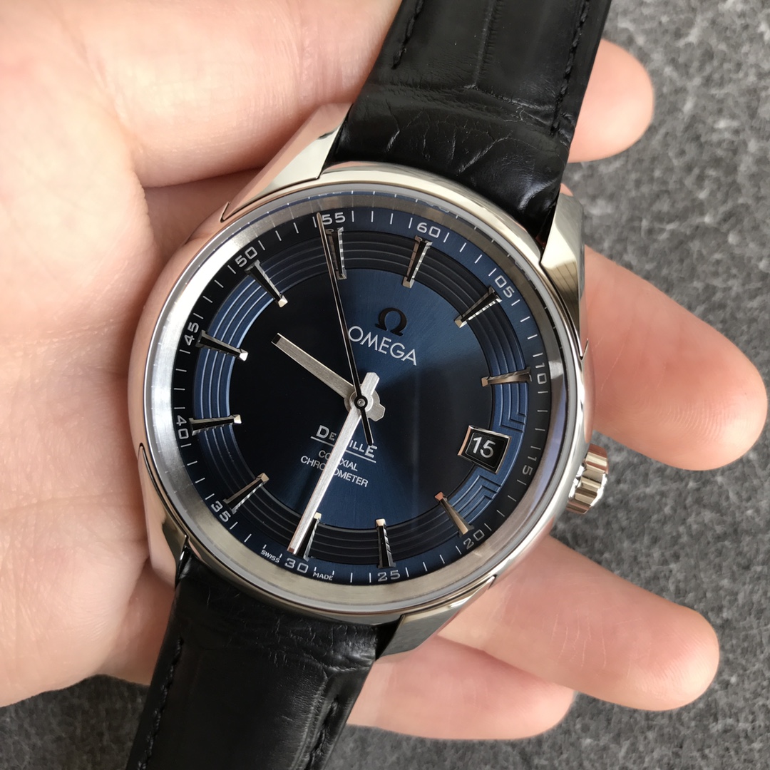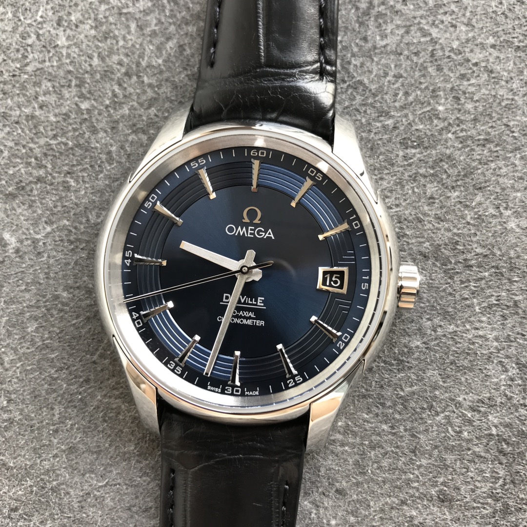 VSファクトリー製 オメガ デ・ヴィル アワービジョン 41mm ブルー文字盤 ブラックストラップ (433.13.41.21.03.001) 1:1スーパークローン – 丹東8900ムーブメント搭載