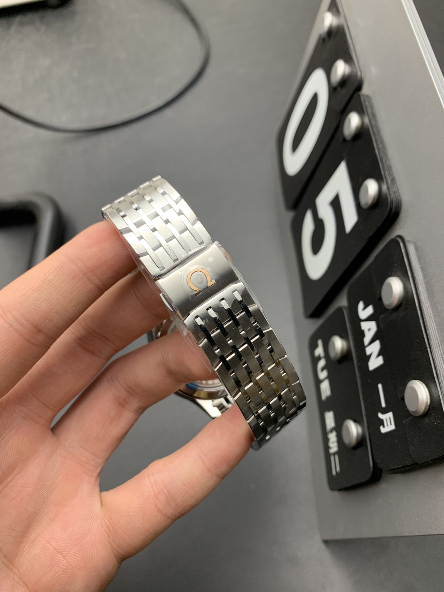 7連 プレステージ ブレスレット: この作品をフォーマルウェアの最高層に引き上げるために、特徴的なデ・ヴィル 7連 ステンレススチール ブレスレットにマウントされています。しばしば「ビーズ・オブ・ライス(米粒)」スタイルと比較されるこの小さく高度に連結されたリンクは、液体金属のように手首を覆い、比類のない快適さと鮮やかなジュエリーのような輝きを提供します。