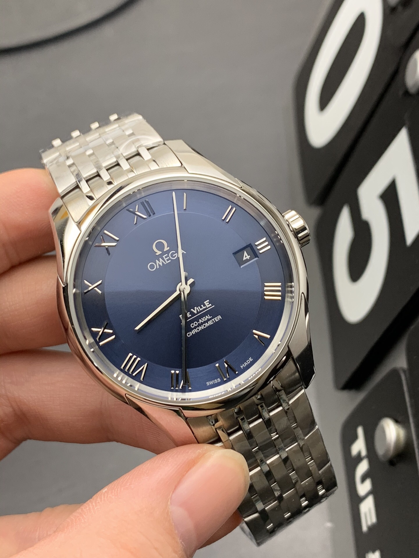 印象的なサンバースト ブルー文字盤: この特定のデ・ヴィル プレステージの決定的な特徴は、その美しく豊かな2ゾーン ブルー文字盤です。VSFは微妙なサンレイ仕上げを完璧に複製し、暗い場所では深くてステルスなネイビーから、直射日光の下では鮮やかなエレクトリックなロイヤルブルーへとダイナミックに変化し、時計がフォーマルでありながら視覚的に魅力的であることを保証します。