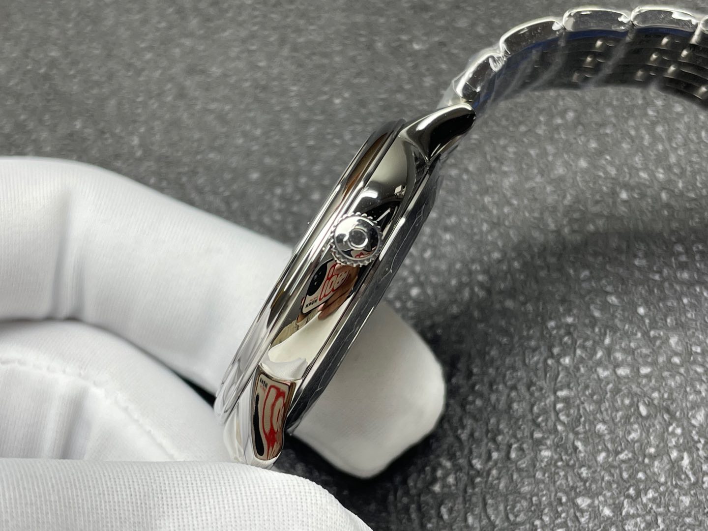 洗練された第3世代ケース: VSFは、アップデートされた第3世代のプレステージ ケースプロファイルを完全に複製しました。モダンでありながらクラシックな40mmのサイズのケース全体は、プレミアムな316Lステンレススチールから作られ、完璧な鏡のような高いポリッシュ仕上げが施されています。スレンダーなプロファイルと緩やかに湾曲したラグにより、究極のフォーマルな快適さのために手首をきれいに包み込みます。