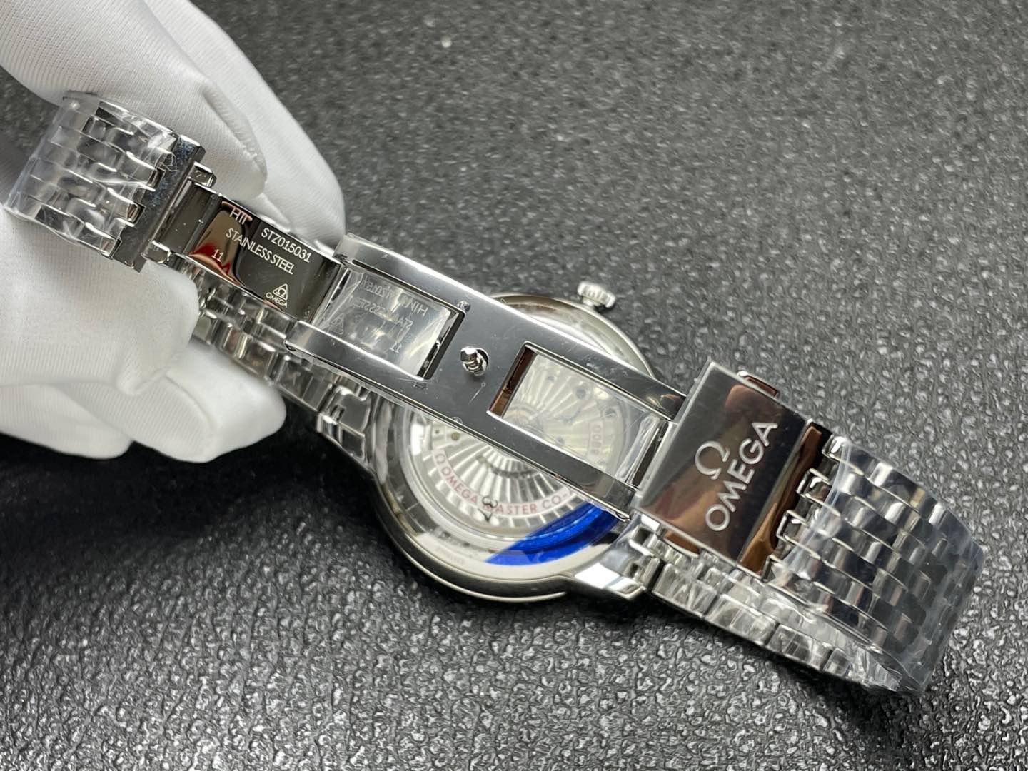 オメガ デ・ヴィル プレステージ (リファレンス 434.10.40.20.02.001) は、オメガカタログにおけるクラシックで控えめなドレスウォッチのエレガンスの絶対的な頂点を表しています。伝説的なVSファクトリー(VSF)によって完璧に実行され、その専門知識を頑丈なスポーツウォッチから非常に洗練されたドレスピースへと拡大したこの1:1レプリカは、本物の第3世代モデルのヴィンテージにインスパイアされた魅力とモダンな建築デザインを捉えています。美しくスレンダーな完全ポリッシュ仕上げの40mmステンレススチールケースに収められ、黒くされた針とクラシックなローマ数字で飾られたドーム型のシルバー文字盤を備えています。コレクションの特徴的なマルチリンク ステンレススチール ブレスレットにマウントされたこの時計は、テーラードシャツの袖口の下に楽々と滑り込みます。信じられないほど信頼性の高い丹東DD8800 1:1コーアクシャルクローンムーブメントを搭載し、完璧な日常のパフォーマンス、完璧な日付の配置、驚くべき装飾の精度を提供します。