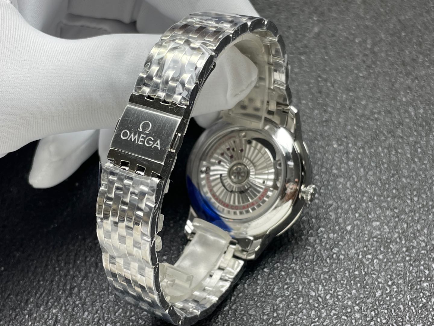 最高傑作のDD8800 コーアクシャルムーブメント: 内部で鼓動するのは、壮観な丹東DD8800スーパークローンです。このムーブメントは、信頼性の高いビートレート、秒針の超スムーズなスイープ、およびクリスプな日付変更メカニズムを提供します。サファイアクリスタルのエキシビションケースバックを通して見ることができ、黒くなったネジとアラベスクの独特のジュネーブウェーブで完璧に装飾されています。