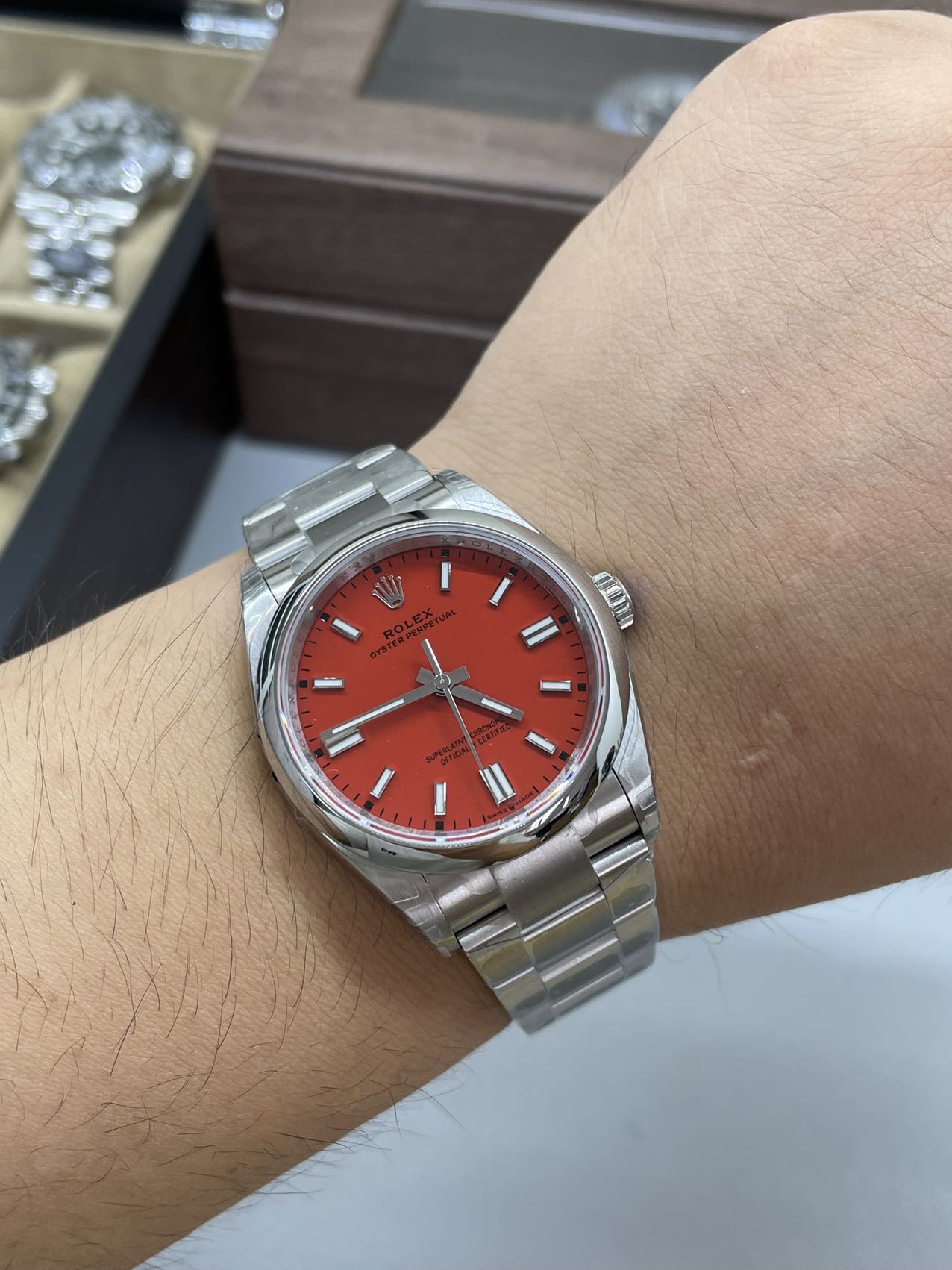 VSファクトリー製 ロレックス オイスター パーペチュアル 36mm コーラルレッド文字盤 スムースベゼル オイスターブレスレット (126000) 1:1スーパークローン – 丹東3230ムーブメント搭載
