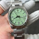 ロレックス オイスター パーペチュアル 36 (リファレンス 126000) はロレックスのデザイン精神の最も純粋な表現であり、この特定のグリーンのカラーウェイは、鮮やかなラッカーのラインナップに新鮮で素朴な解釈を提供しています。伝説的なVSファクトリー(VSF)によって完璧に実行されたこの1:1スーパークローンは、1970年代のヴィンテージの「ステラ」文字盤に直接敬意を表した、非常に人気の高いグリーン ラッカー文字盤を複製しています。日付ウィンドウ、フルーテッドベゼル、およびポリッシュ仕上げの中央リンクを削ぎ落とし、クリーンでカラフルなミニマリズムの傑作を提供します。高度に研磨された滑らかなベゼルで縁取られ、頑丈な完全サテン仕上げのオイスターブレスレットにマウントされたこの36mmの時計は、究極の用途の広いステートメントウォッチです。VSFの業界をリードするVS3230自動巻きムーブメントを搭載し、日付の複雑さの乱雑さなしに、真の72時間パワーリザーブと妥協のない精度を提供します。