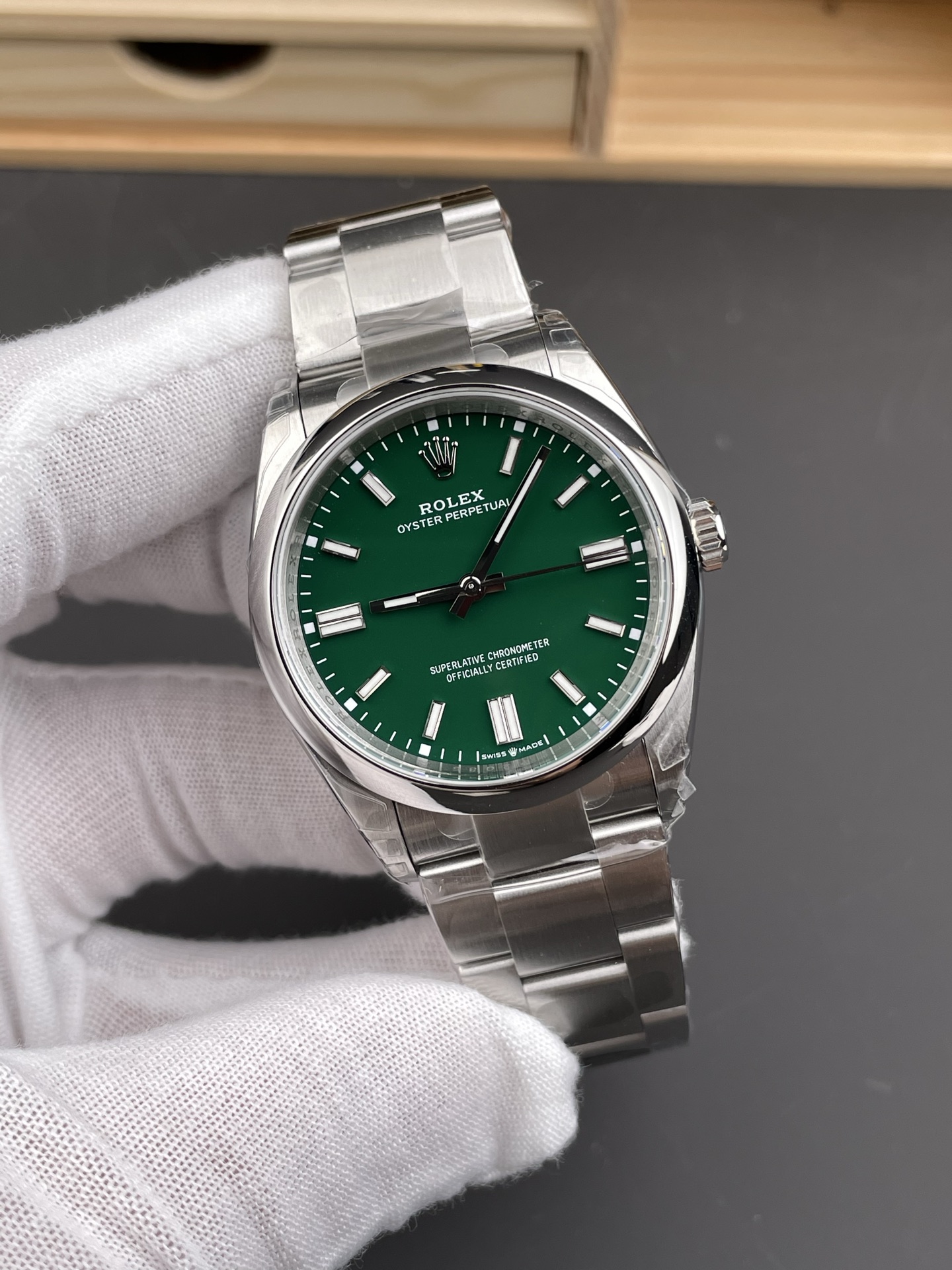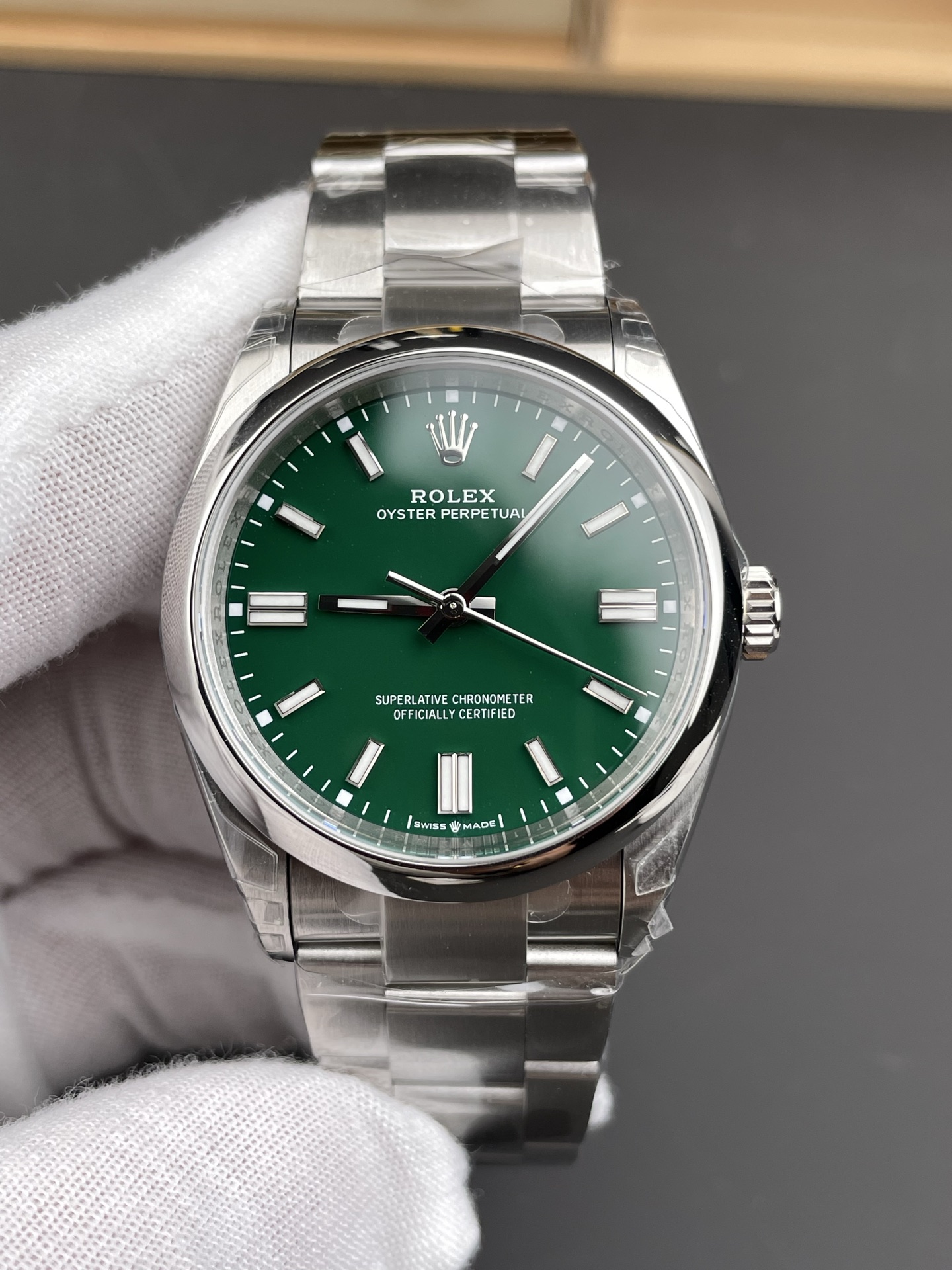 VSファクトリー製 ロレックス オイスター パーペチュアル 36mm「ロレックス グリーン」ラッカー文字盤 スムースベゼル オイスターブレスレット (126000) 1:1スーパークローン – 丹東3230ムーブメント搭載