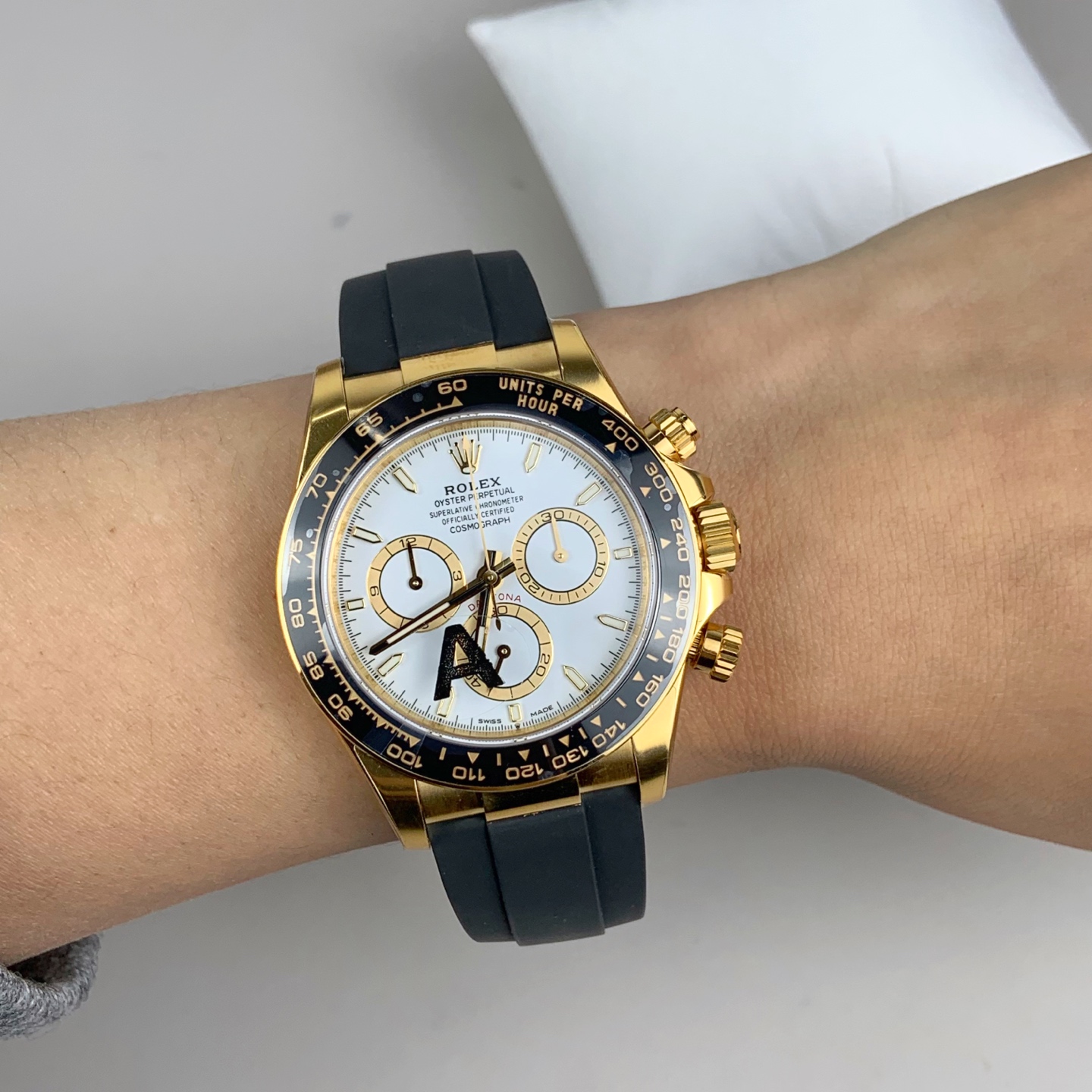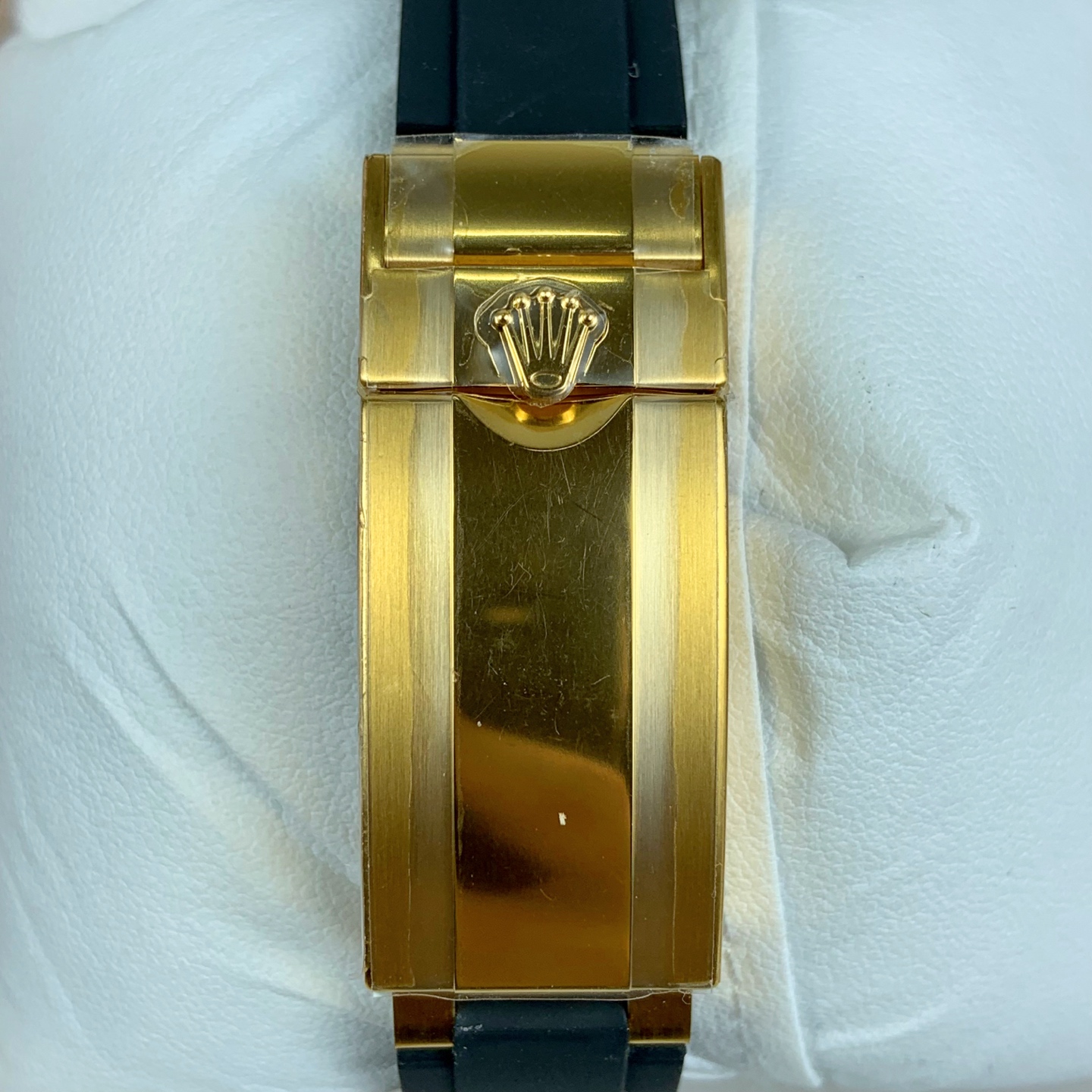 ストラップ: プレミアム ブラック オイスターフレックス エラストマー(ラバー)ストラップ(18Kイエローゴールドコーティング オイスターロック・フォールディングクラスプ付き)