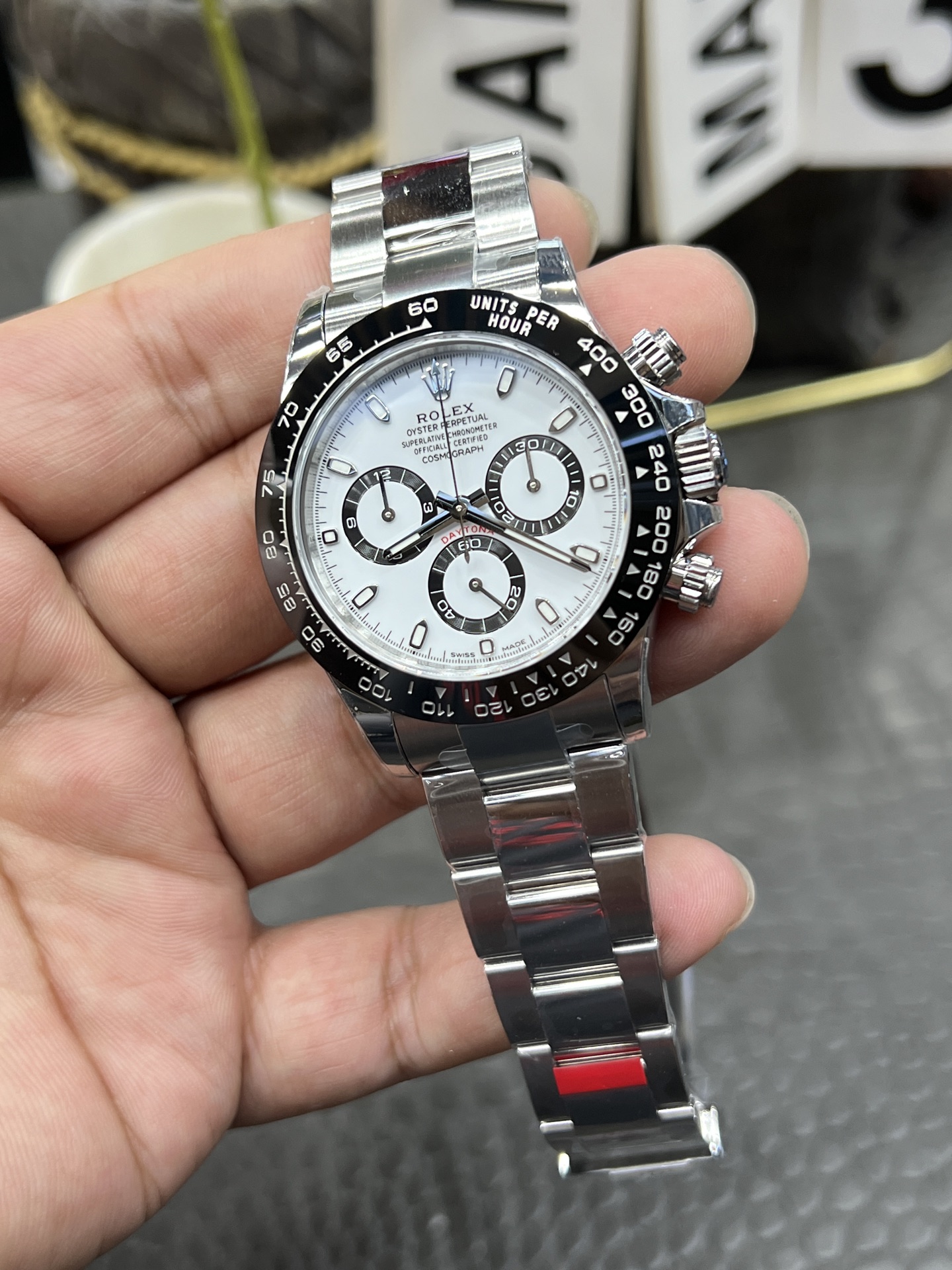 VSファクトリー製 ロレックス コスモグラフ デイトナ「パンダ」ホワイト文字盤 (116500LN) 1:1スーパークローン - 丹東4130ムーブメント搭載
