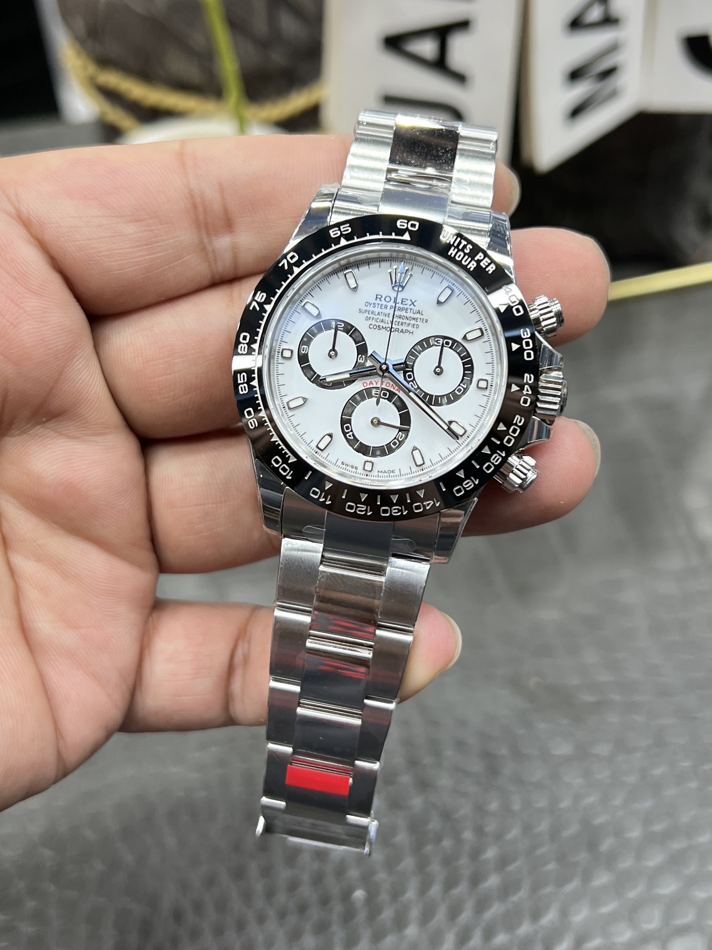 • クラシックな116500LNの美学: 最新世代とは異なり、このクラシックな116500LNは、スチールの境界リングなしで端まで伸びるソリッドなブラックセラミックベゼルを特徴としています。多くのコレクターはこの美学を非常に好みます。なぜなら、ブラックセラミックが視覚的に「際立ち」、手首でわずかに広く、よりアグレッシブに見えるからです。