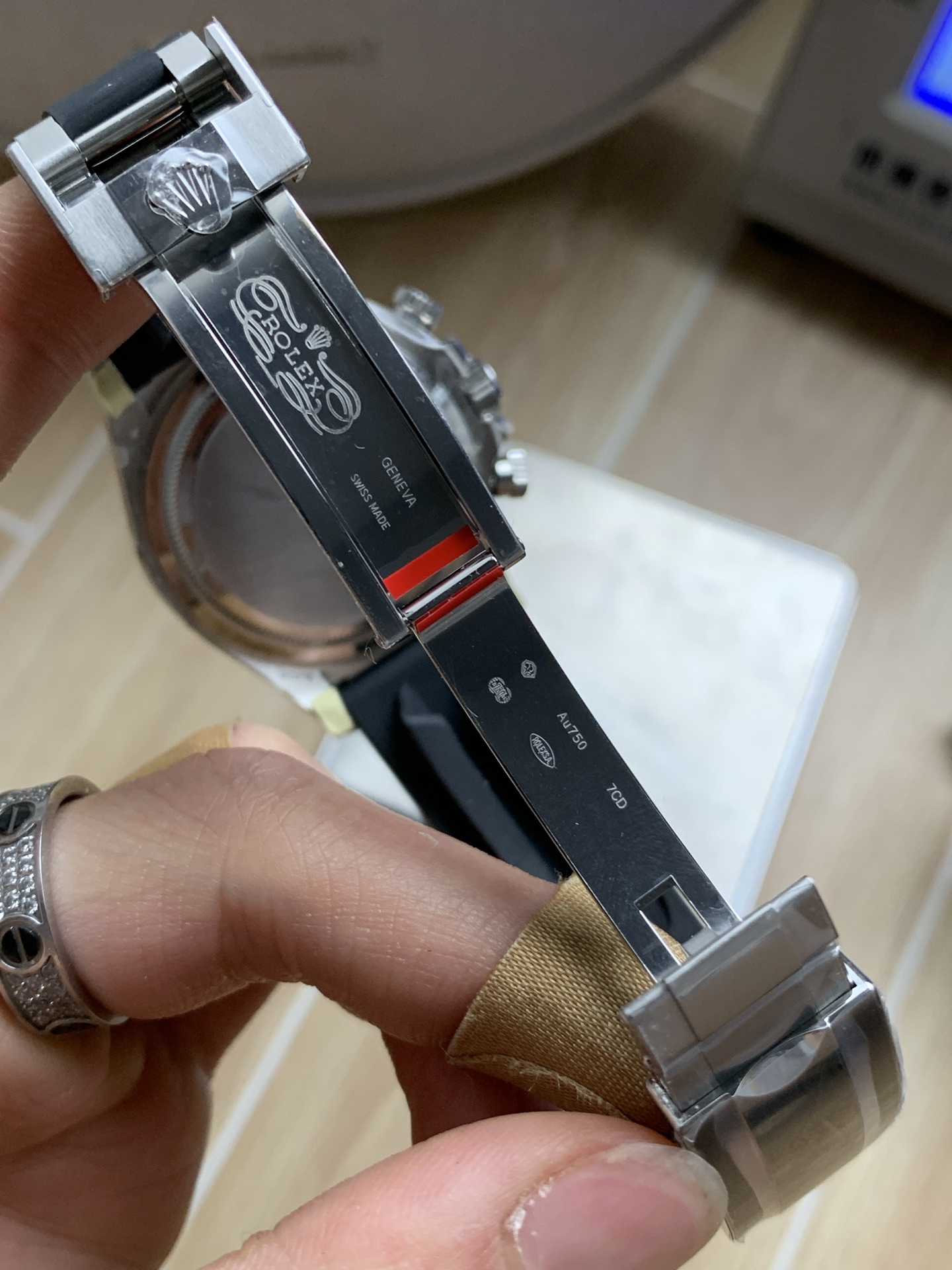 ホワイトゴールドの光沢を模倣: 非常に耐久性の高い904Lステンレススチールから鍛造されていますが、VSファクトリーはケースとクラスプに特殊で完璧なハイポリッシュ仕上げを施し、本物の18Kホワイトゴールド特有の、わずかに温かみのある白い輝きを完璧に再現しています。
