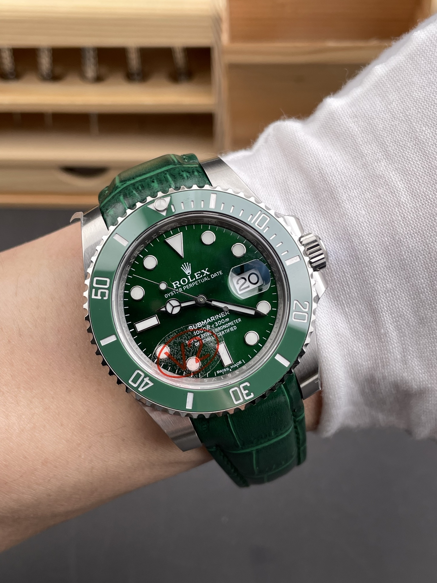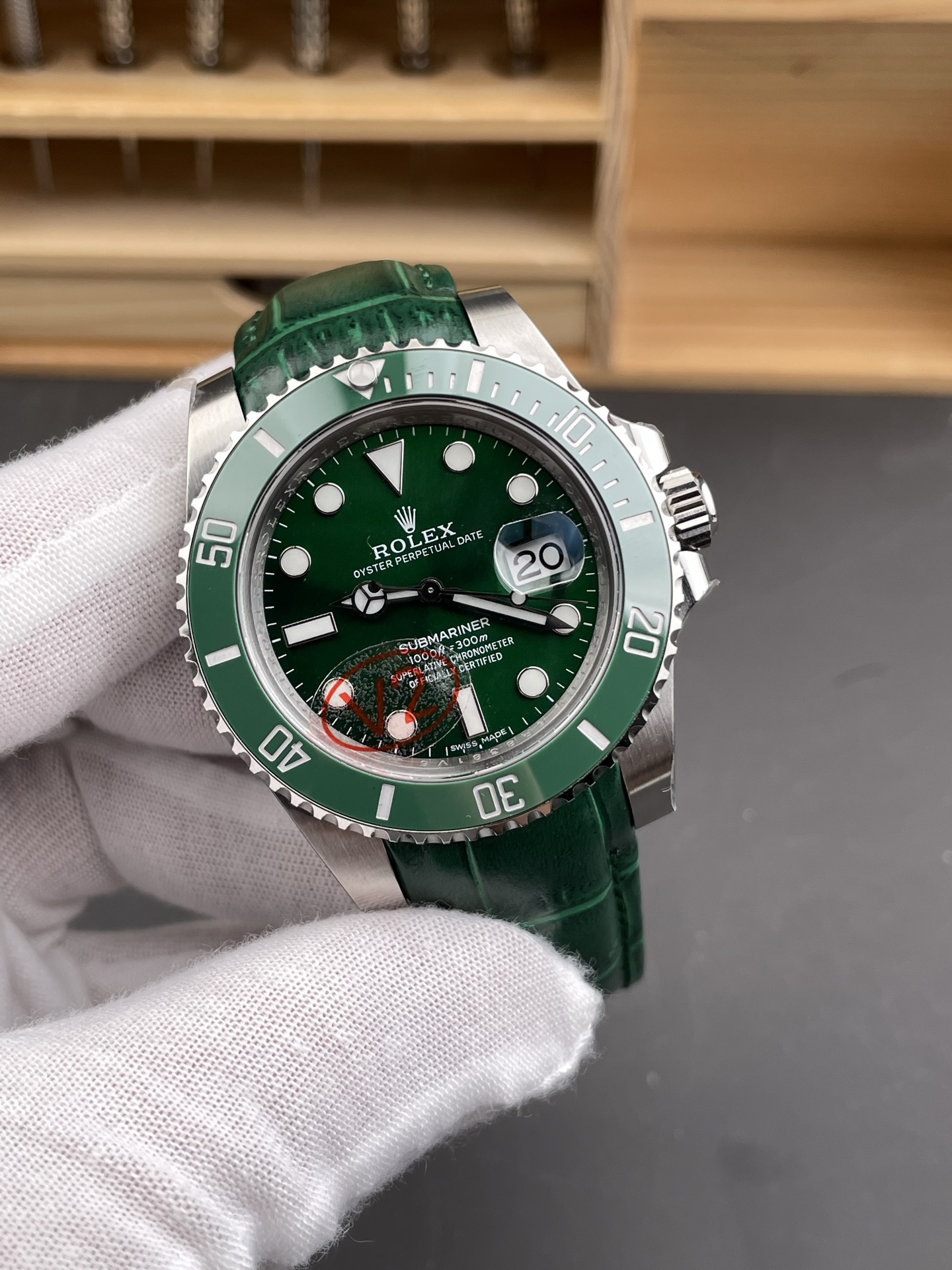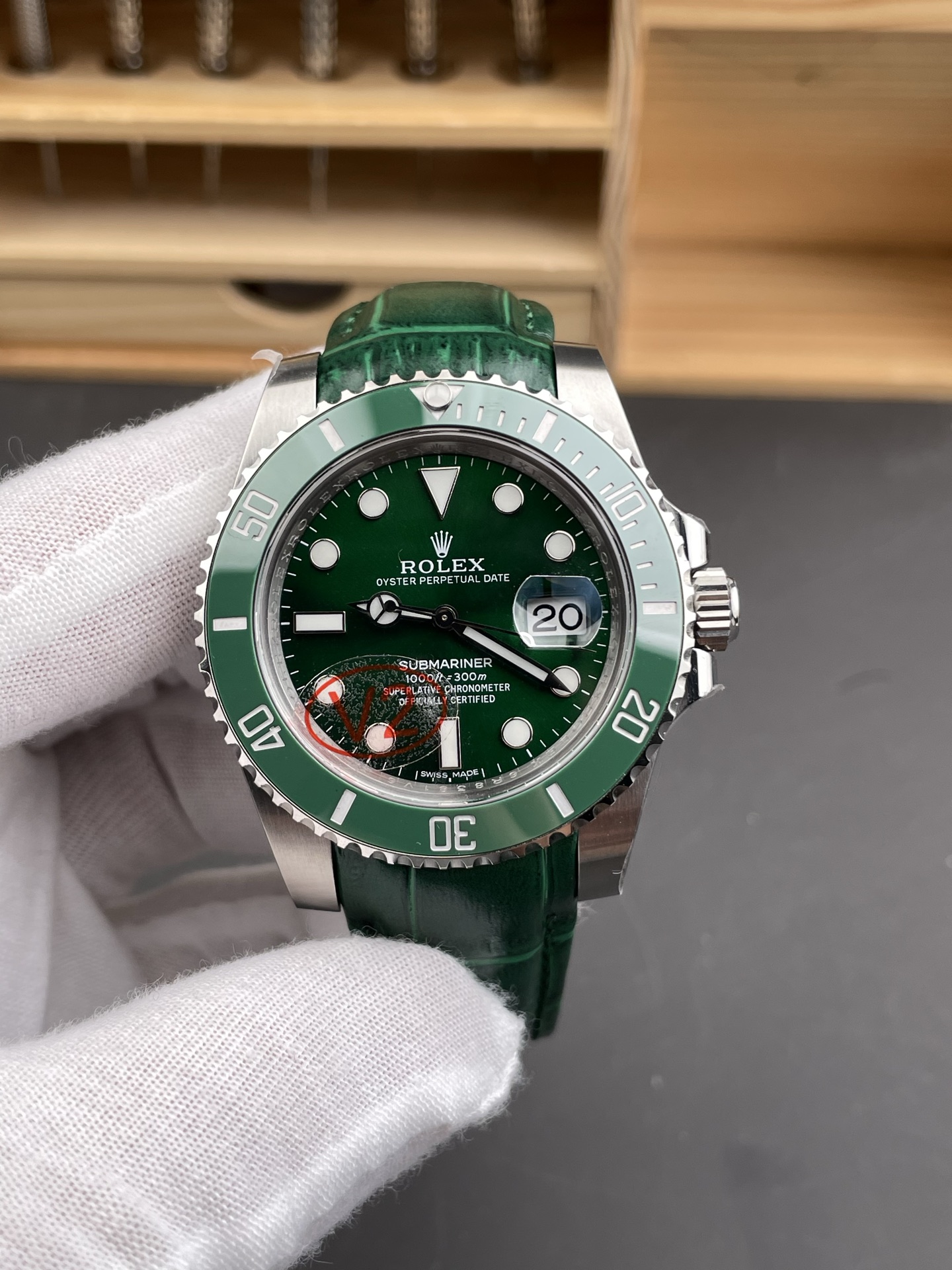 VSファクトリー製 ロレックス サブマリーナーデイト「ハルク」カスタムグリーンレザーストラップ 40mm (116610LV) 1:1スーパークローン – 丹東3135ムーブメント搭載