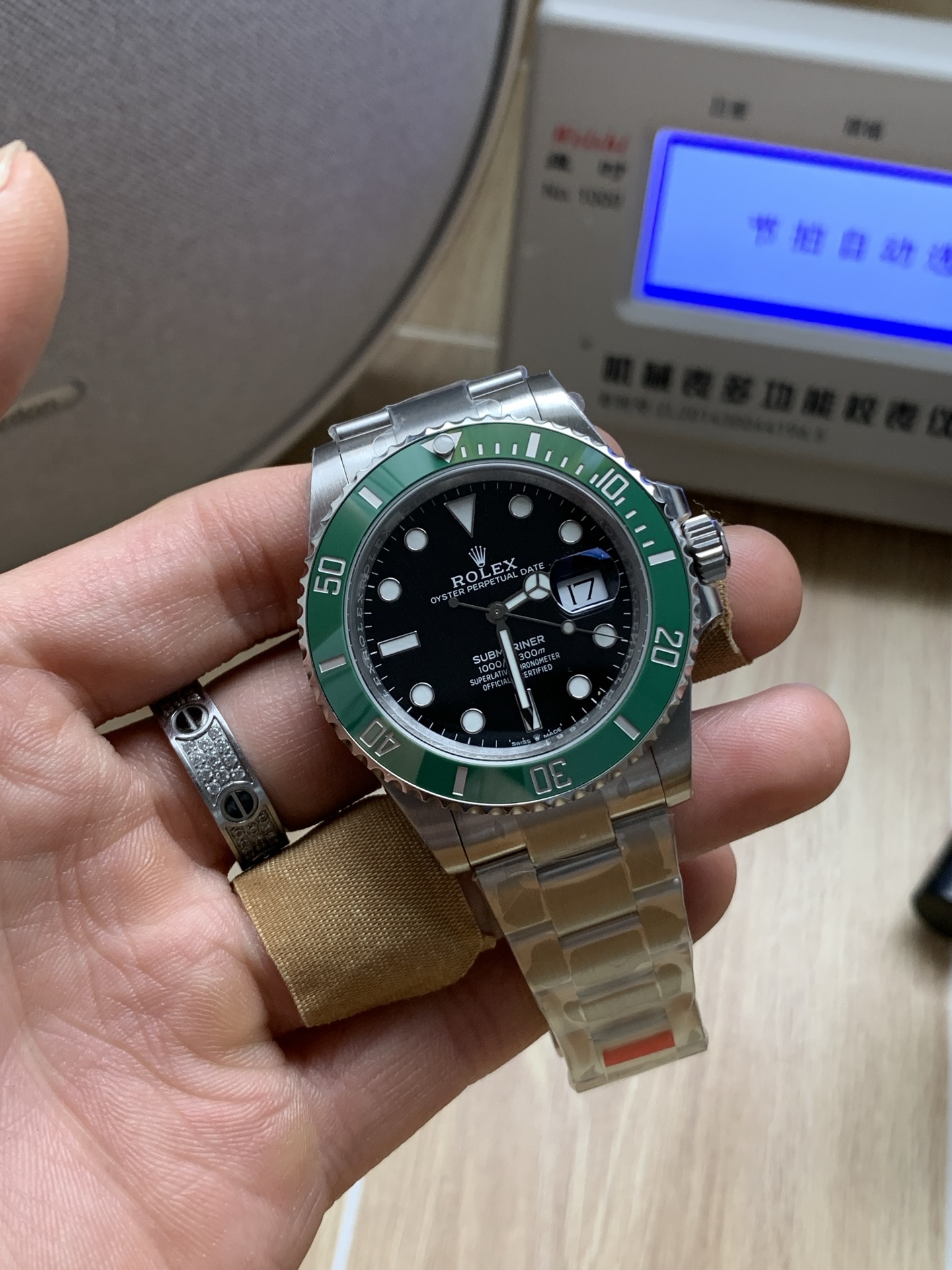 • 「スターバックス」の美学: 全体がグリーンの「ハルク」に代わり、このモダンな構成は光沢のあるブラック文字盤とグリーンセラミックベゼルを組み合わせています。VSFは、旧世代とはわずかに異なる、より洗練されたグリーンである実機126610LVベゼルの正確な色合いを見事に再現し、安価なレプリカでは達成できない完璧な1:1のカラーマッチを保証しています。