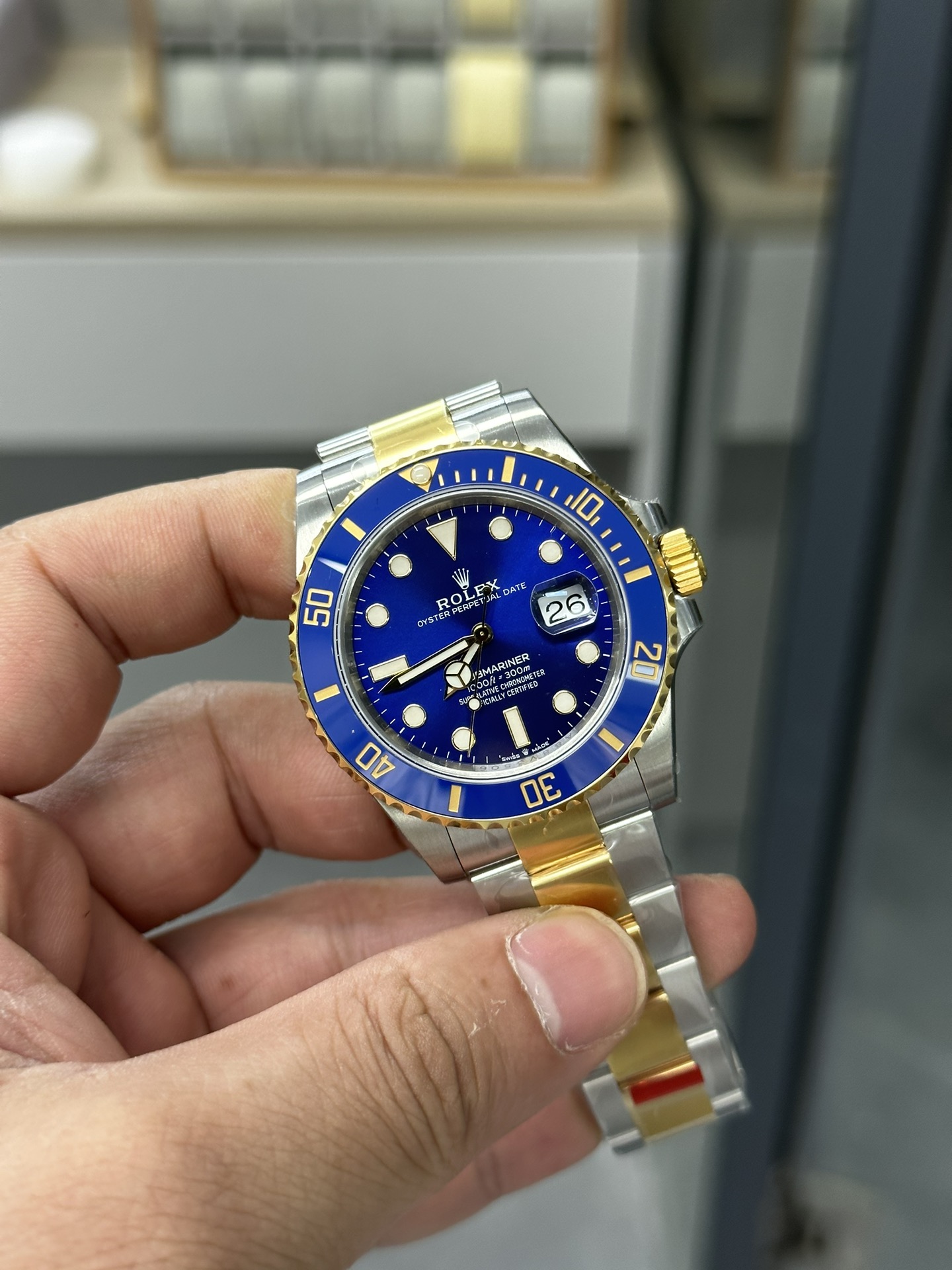 コレクターから「ブルージー (Bluesy)」の愛称で親しまれているツートンのロレックス サブマリーナー デイト (リファレンス 126613LB) は、頑丈なプロフェッショナルグレードのダイビングの有用性と妥協のない貴金属のラグジュアリーの息を呑むような融合です。モダンなサブマリーナー スーパークローンの誰もが認めるマスターである伝説的なVSファクトリー(VSF)によって完璧に実行されたこの1:1レプリカは、本物の裕福でハイコントラストな美学と複雑な建築デザインを捉えています。完全に洗練された41mmのオイスターケースに収められ、耐食性に優れた904Lオイスタースチールと対照的な印象的な18Kイエローゴールドのアクセントが特徴です。絶対的な際立った特徴は、一致するブルーのセラクロム(Cerachrom)セラミックベゼルに完全に縁取られた、魅惑的なサンバースト ブルー文字盤です。グライドロック(Glidelock)エクステンションシステムを備えた、ヘビーデューティーなツートンのオイスターブレスレットにマウントされたこの時計は、究極の「ヨットから役員室まで」のデイリーウェアです。信じられないほど信頼性の高い丹東VS3235 1:1クローンムーブメントを搭載し、完璧な日常のパフォーマンス、72時間の強力なパワーリザーブ、驚くべき機械的精度を提供します。
