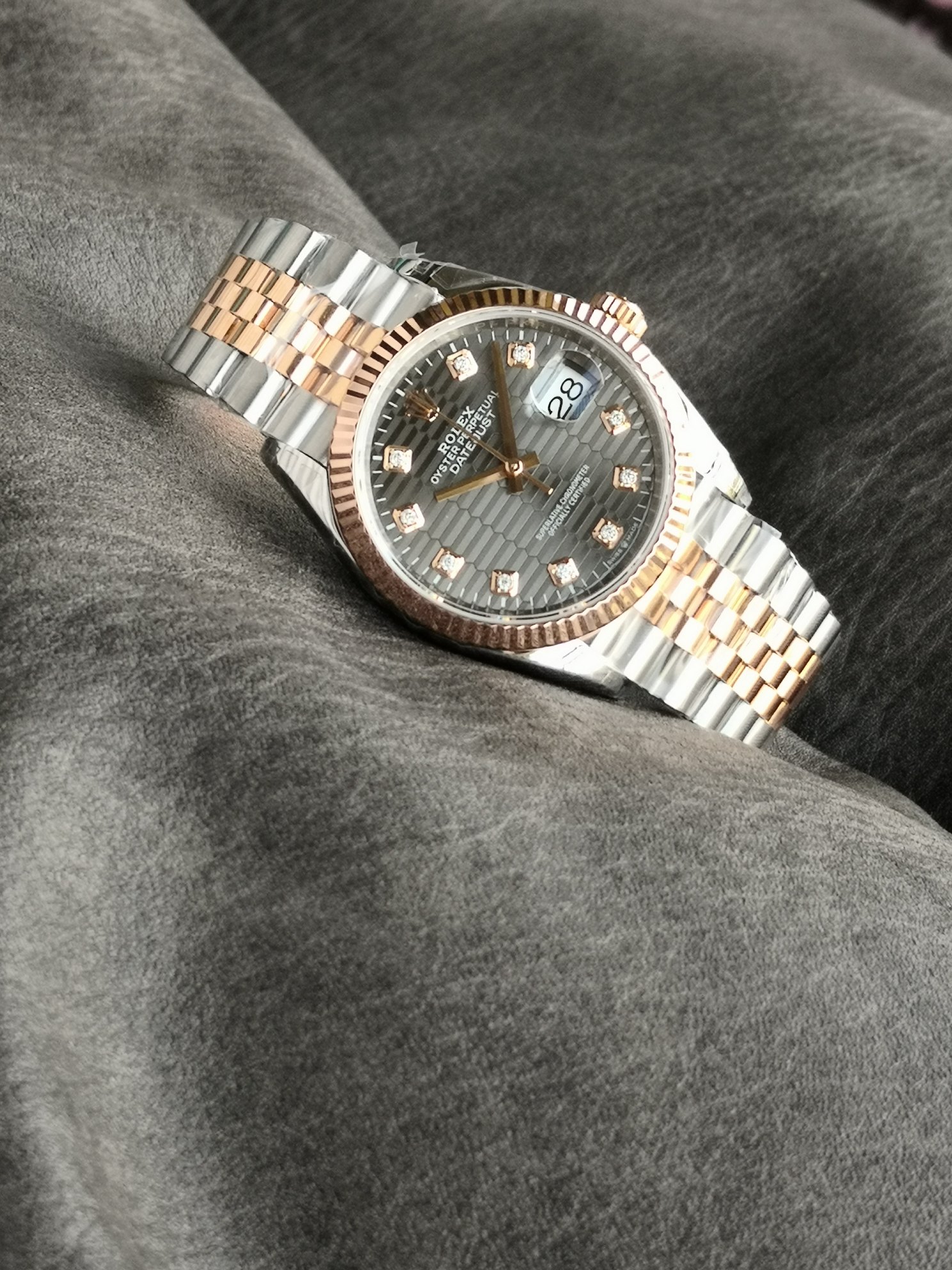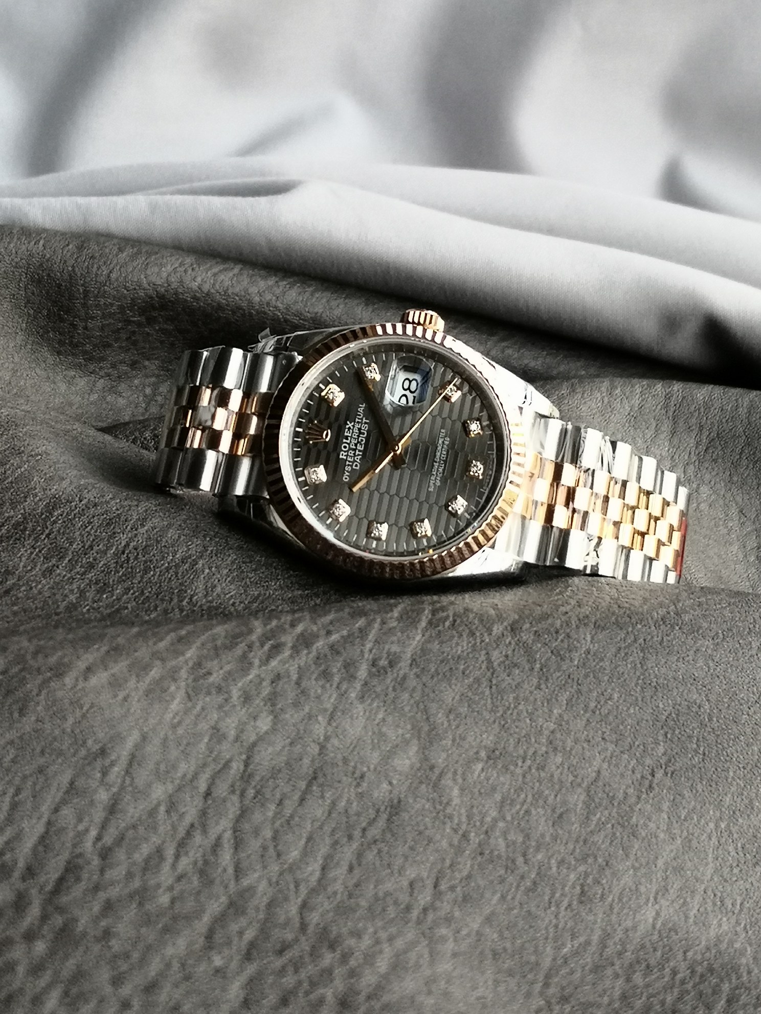 リファレンスナンバー: 126231(36mm ツートンスチール&エバーローズゴールド / フルーテッド モチーフ ダイヤモンド文字盤 / ジュビリーブレスレット)