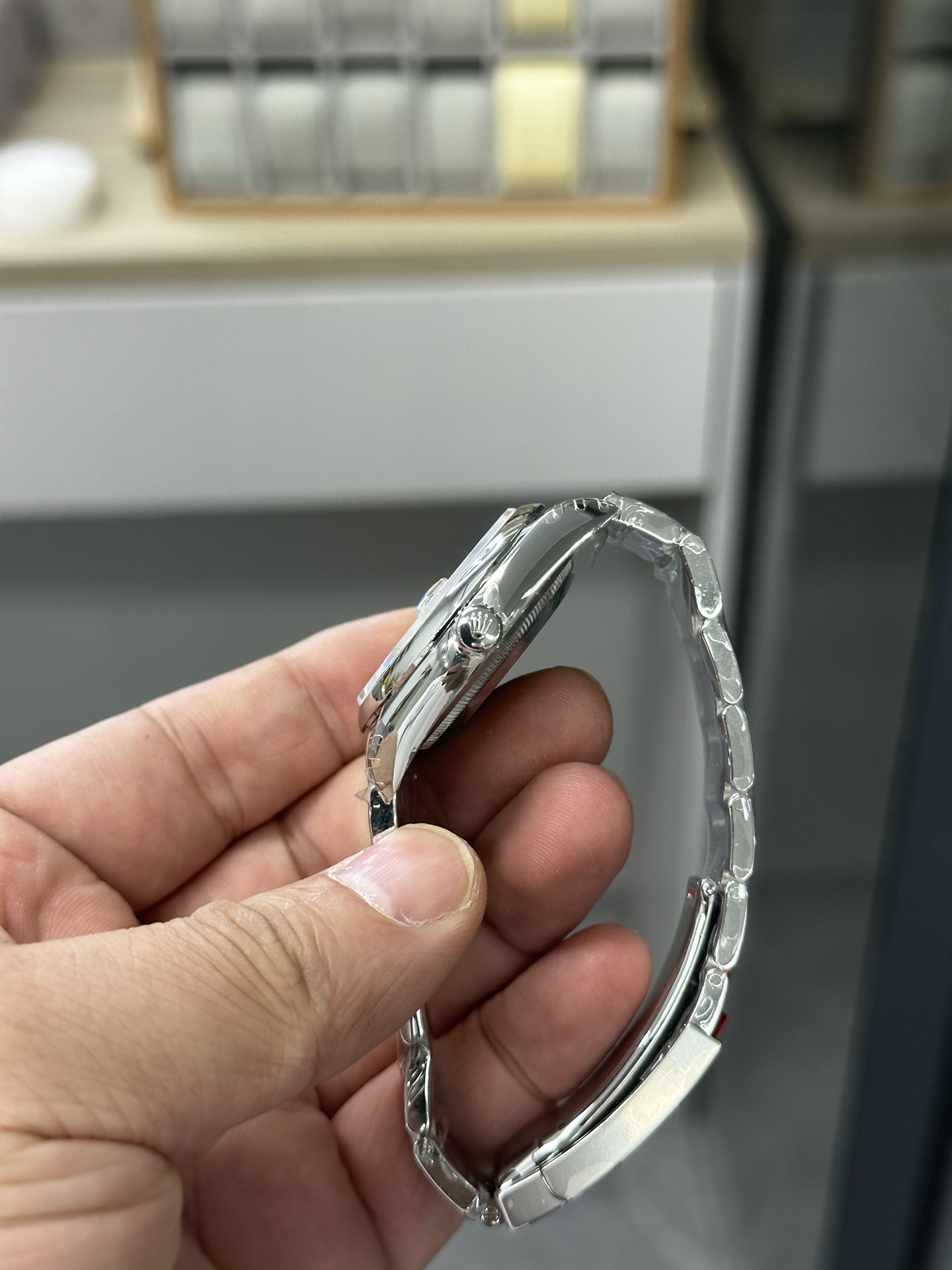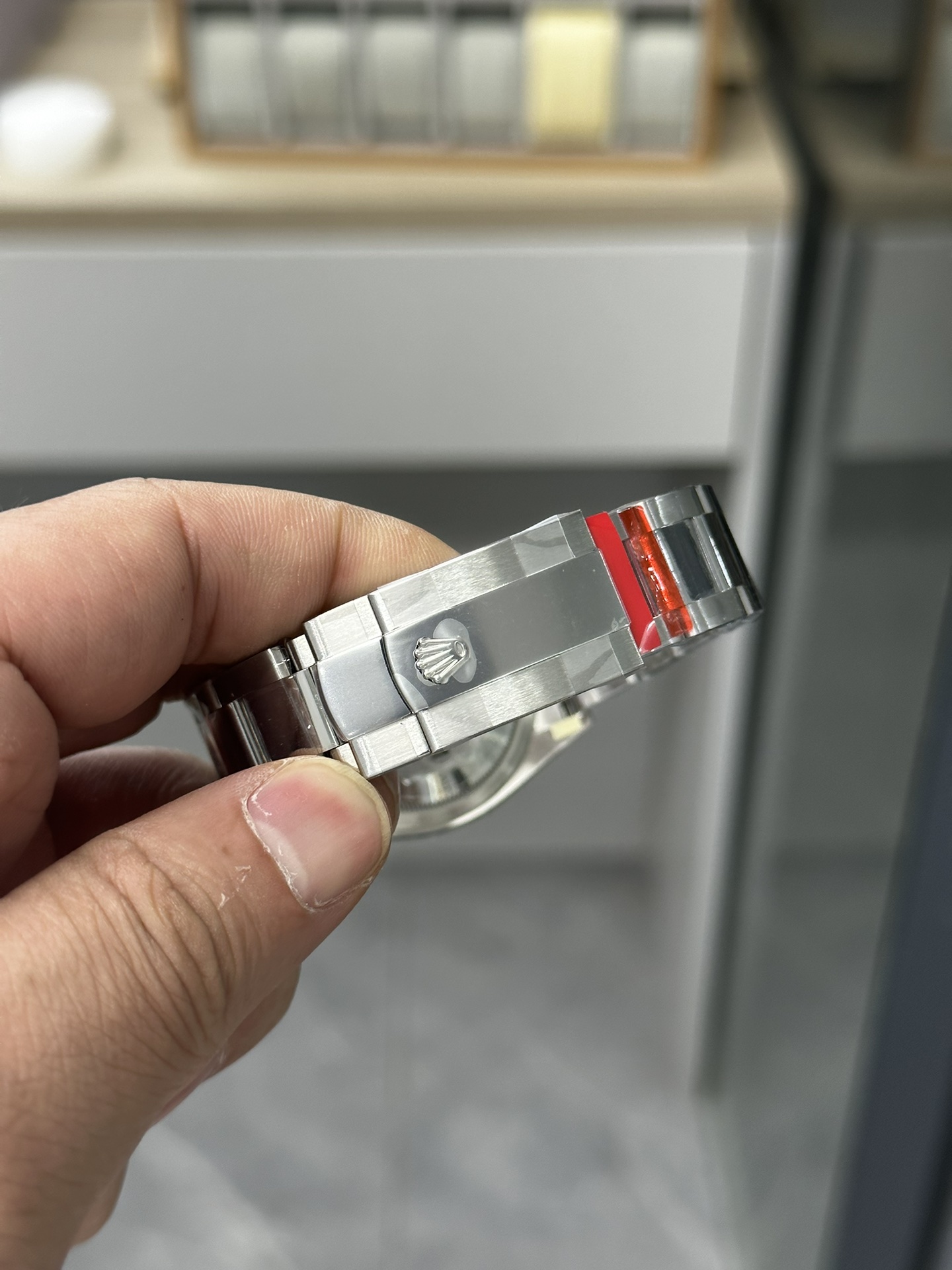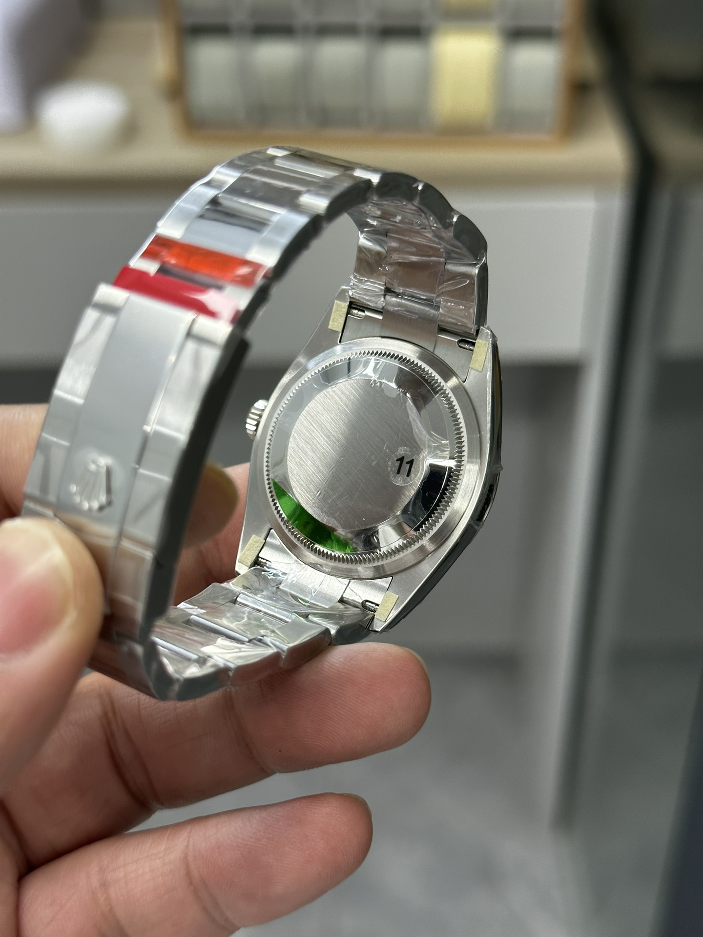 プレミアムな904Lスチール構造: ケース全体、ベゼル、およびオイスターブレスレットはハイグレードな904Lステンレススチールから鍛造されており、オリジナルのロレックス オイスタースチールと全く同じ重量、重厚感、および優れた耐腐食性を提供します。ブレスレットには、便利な5mmのイージーリンク快適拡張システムを備えた非常に安全なフォールディング オイスタークラスプが装備されています。