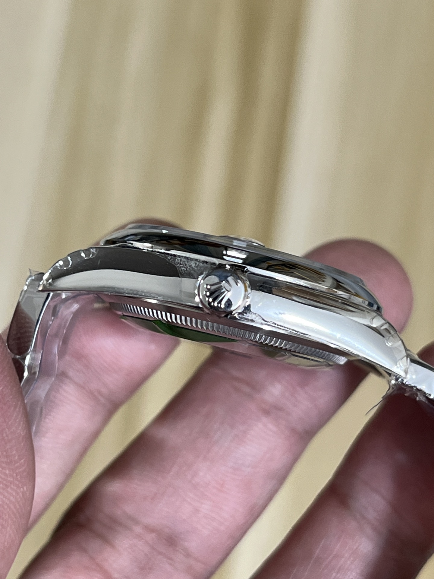 プレミアムな904Lスチール構造: ケース全体、ベゼル、およびオイスターブレスレットはハイグレードな904Lステンレススチールから鍛造されており、オリジナルのロレックス オイスタースチールと全く同じ重量、重厚感、および優れた耐腐食性を提供します。ブレスレットには、5mmのイージーリンク快適拡張システムを備えた非常に安全なフォールディング オイスタークラスプが装備されています。