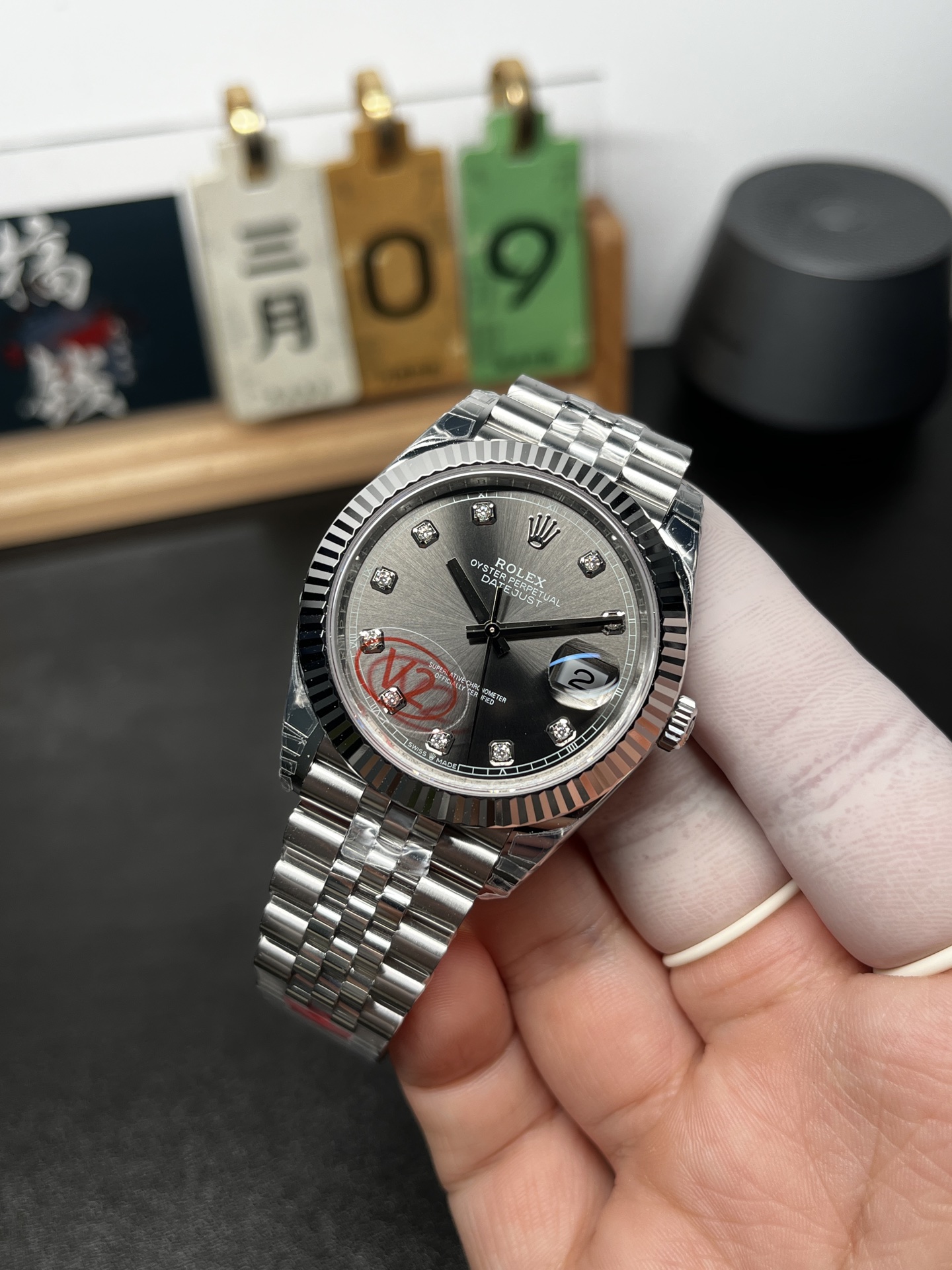 文字盤: サンバースト スレート / ダークグレー(カスタム ダイヤモンドインデックス)