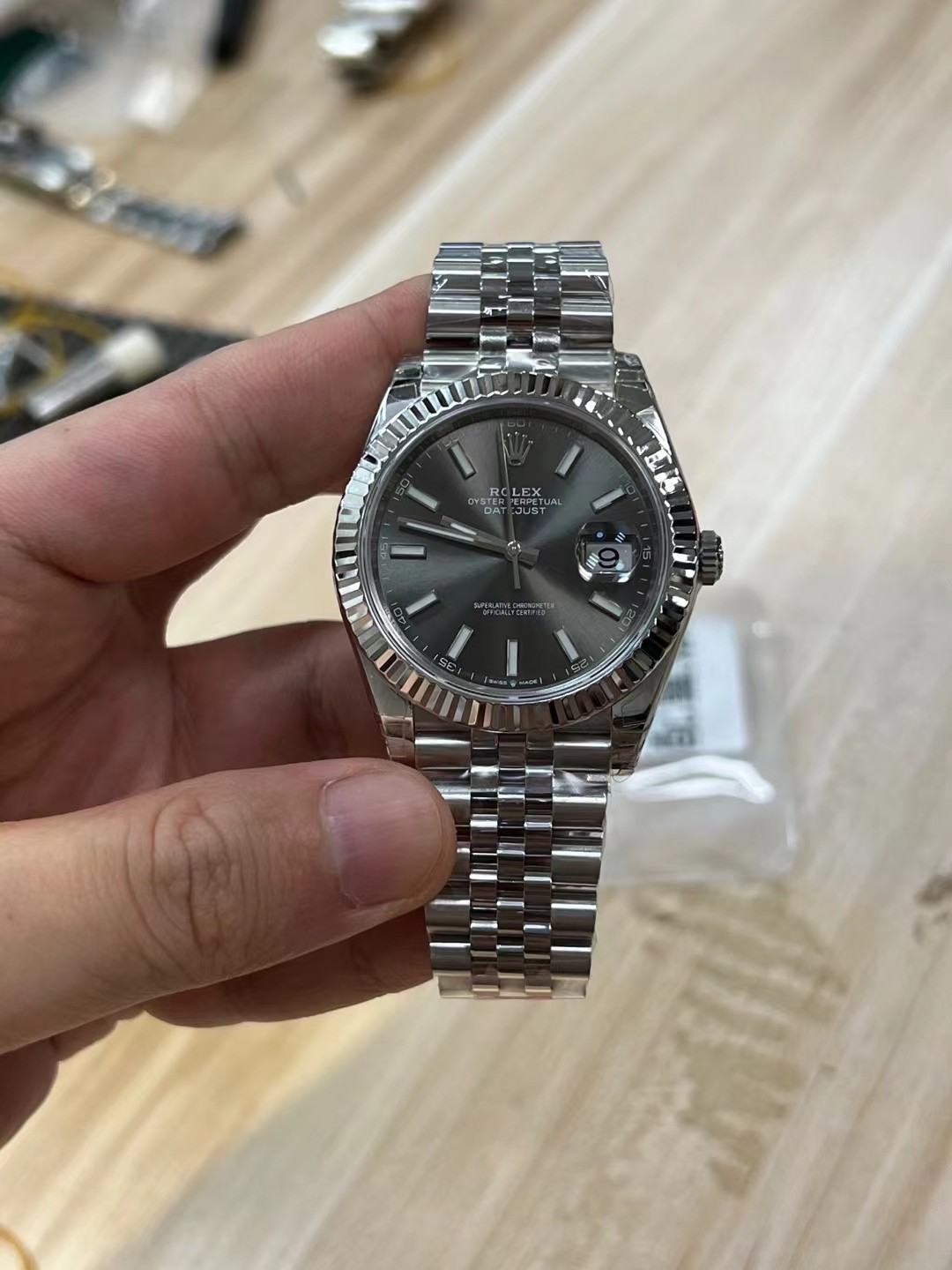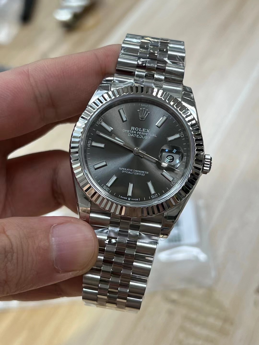 VSファクトリー製 ロレックス デイトジャスト 41mm サンバースト スレート文字盤 フルーテッドベゼル ジュビリーブレスレット (126334) 1:1スーパークローン – 丹東3235ムーブメント搭載