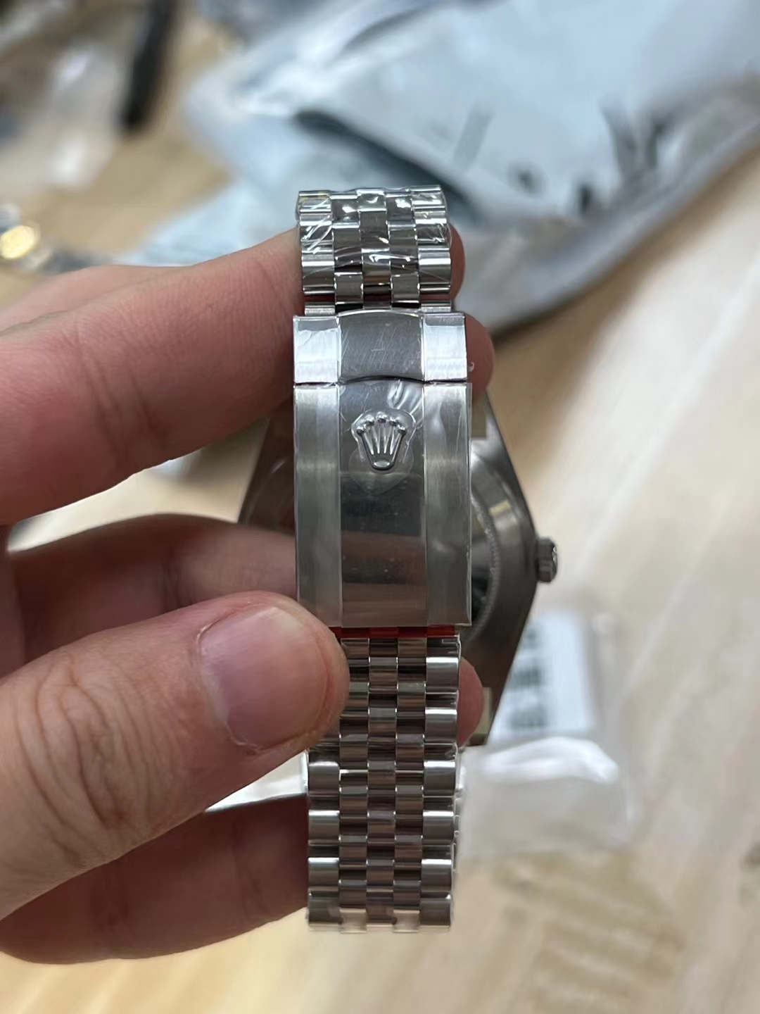 • ブレスレット: ソリッド 904Lスチール ジュビリーブレスレット(5連リンク、フォールディング オイスタークラスプ付き)