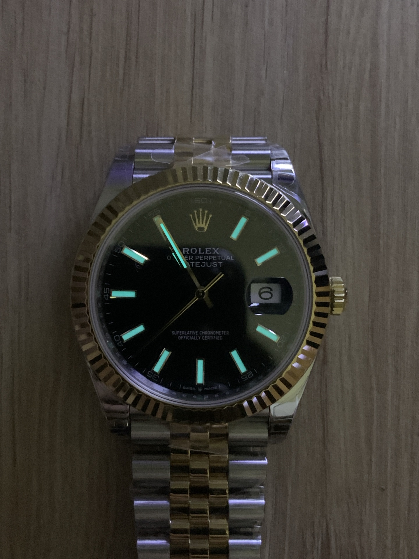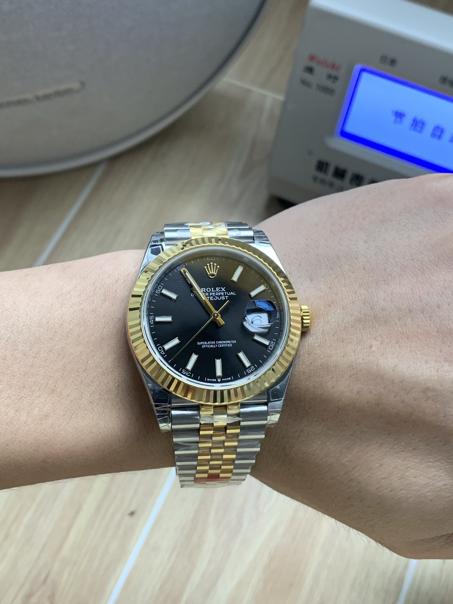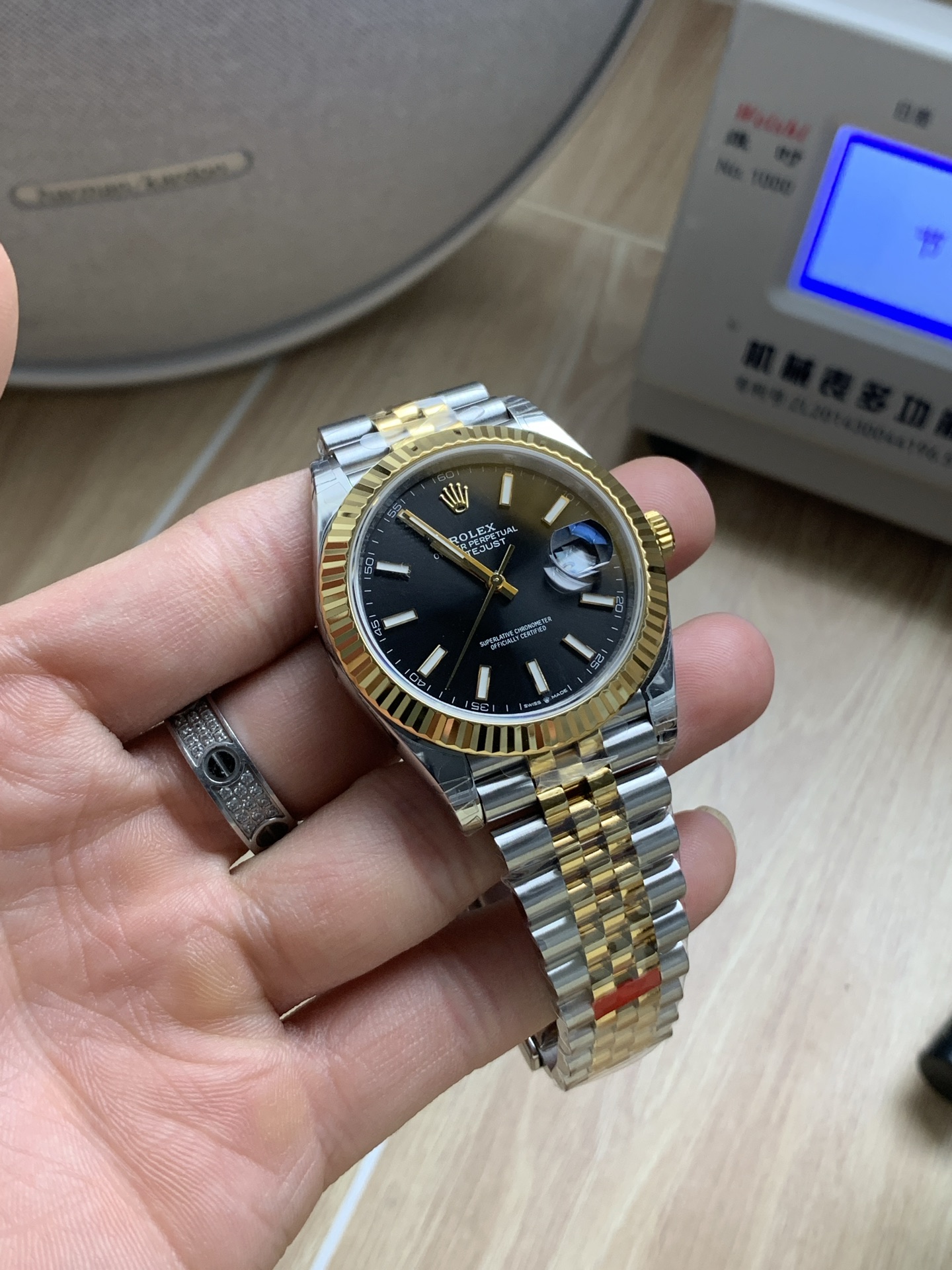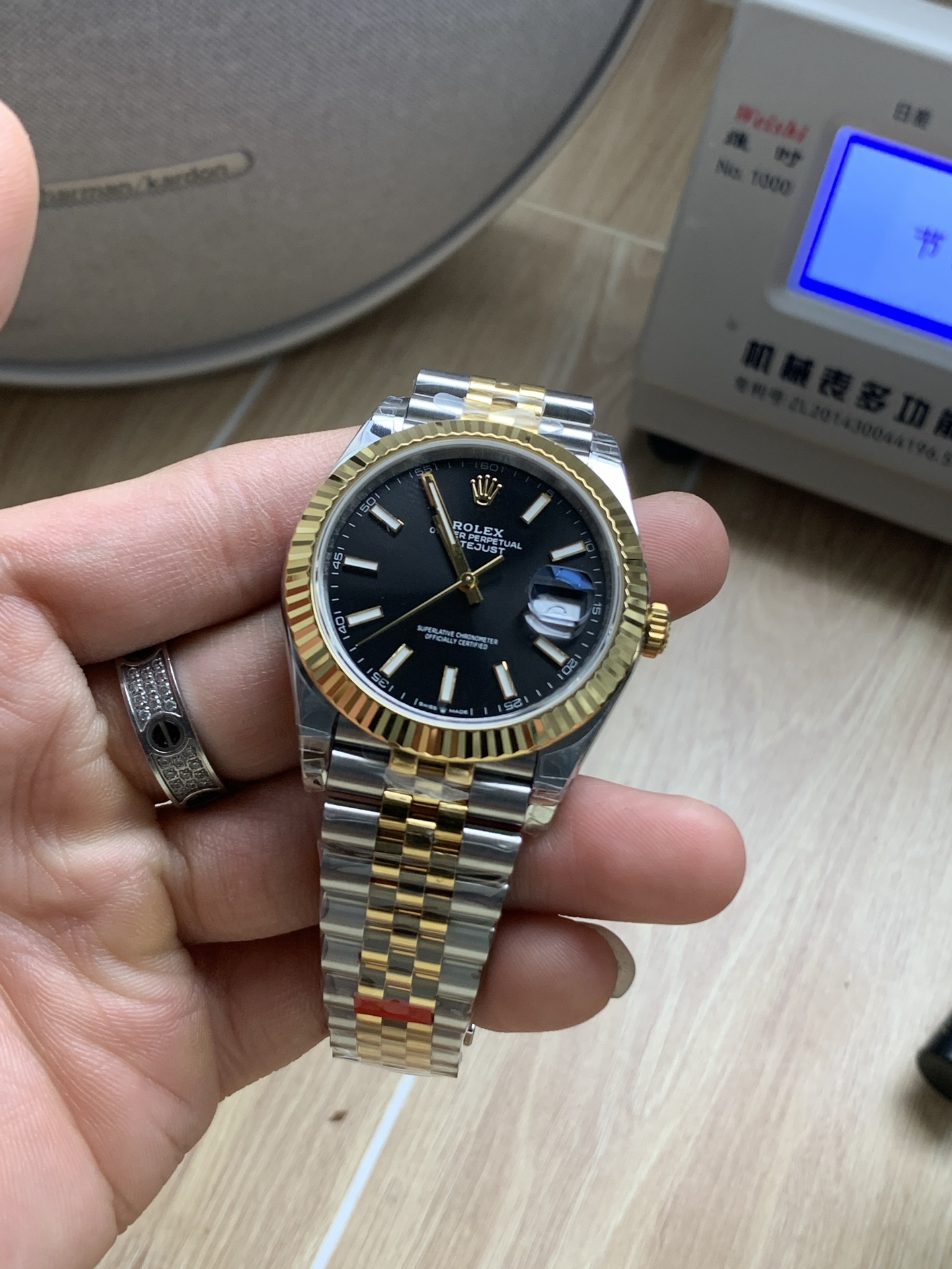 「イエローロレゾール」の美学: ジュビリーブレスレットの外側リンクとメインケースは耐久性に優れた高光沢の904Lオイスタースチールから鍛造されており、ベゼル、リューズ、および中央リンクには豊かな18Kイエローゴールドが厚くコーティングされています。VSFは、過度に真鍮のような、または偽物に見える色合いを避け、ロレックス純正のゴールドに正確に一致するように、この温かみのあるゴールドの色合いを見事に完成させました。