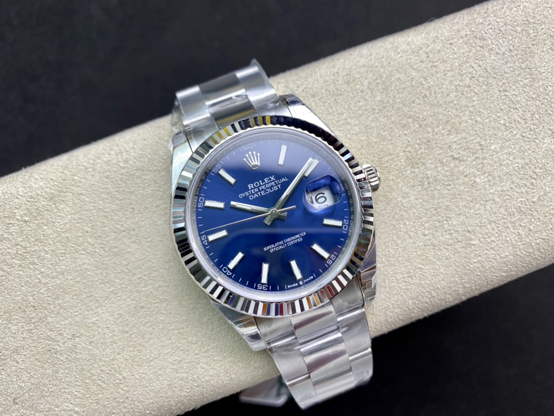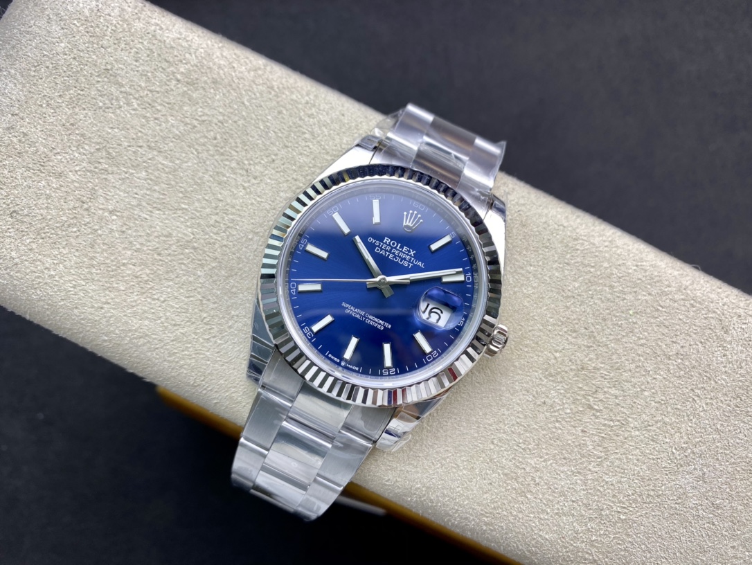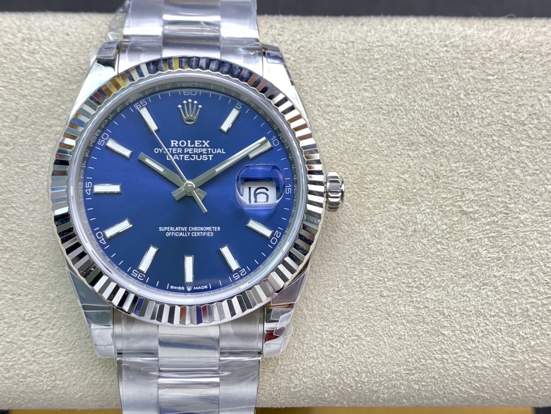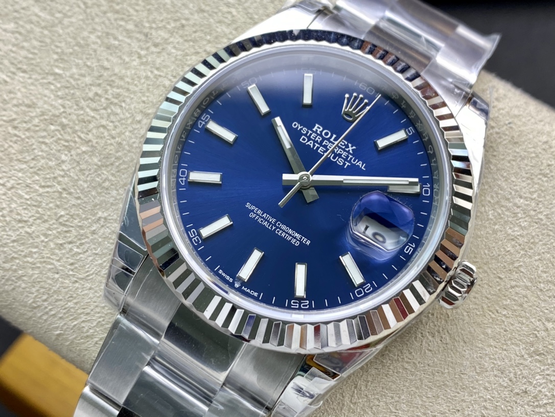 VSファクトリー製 ロレックス デイトジャスト 41mm ブルー サンバースト文字盤 スムースベゼル ジュビリーブレスレット (126300) 1:1スーパークローン - 丹東3235ムーブメント搭載