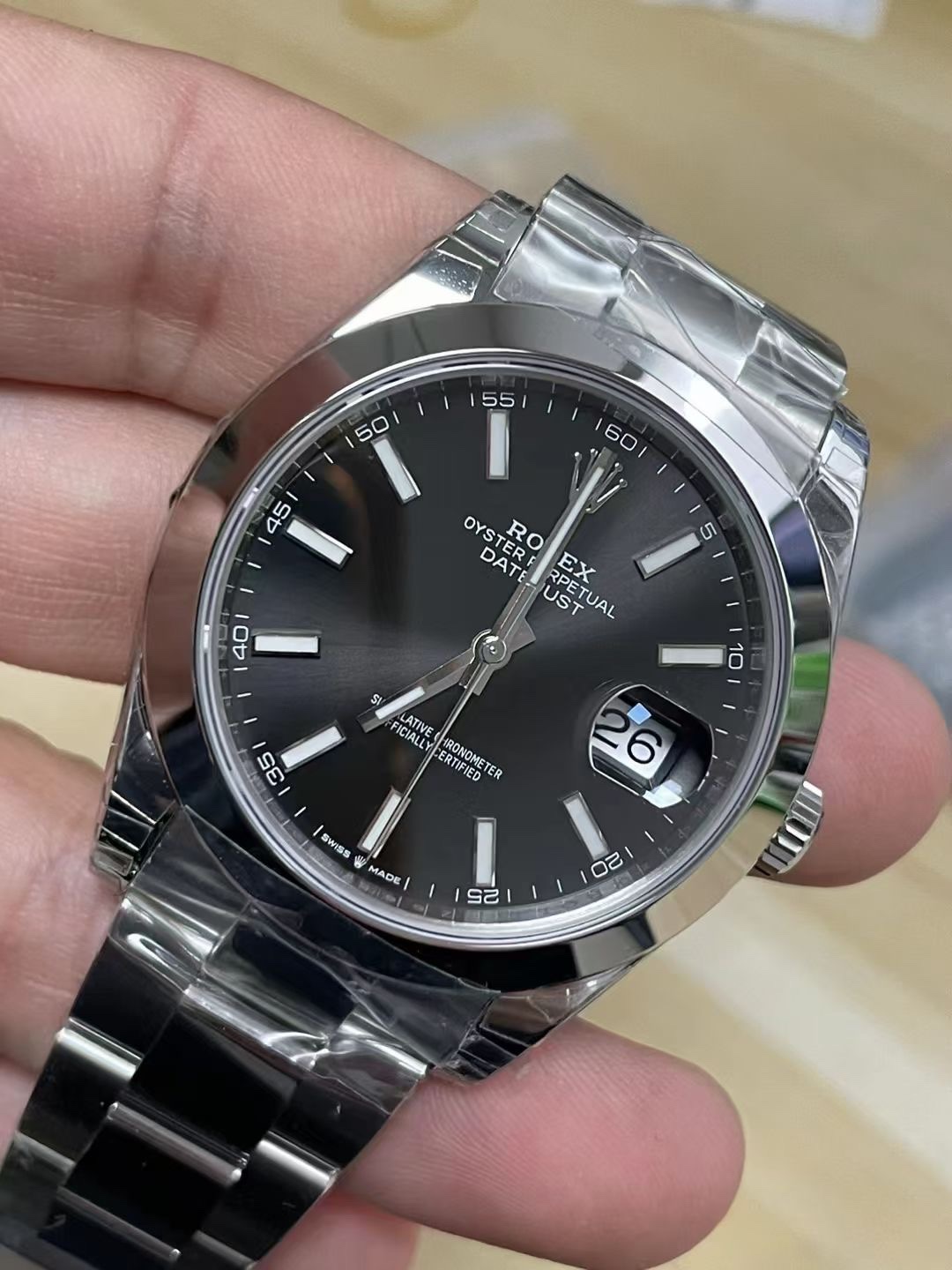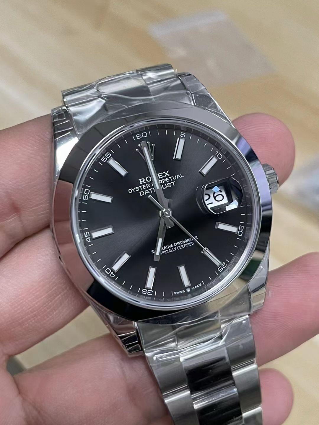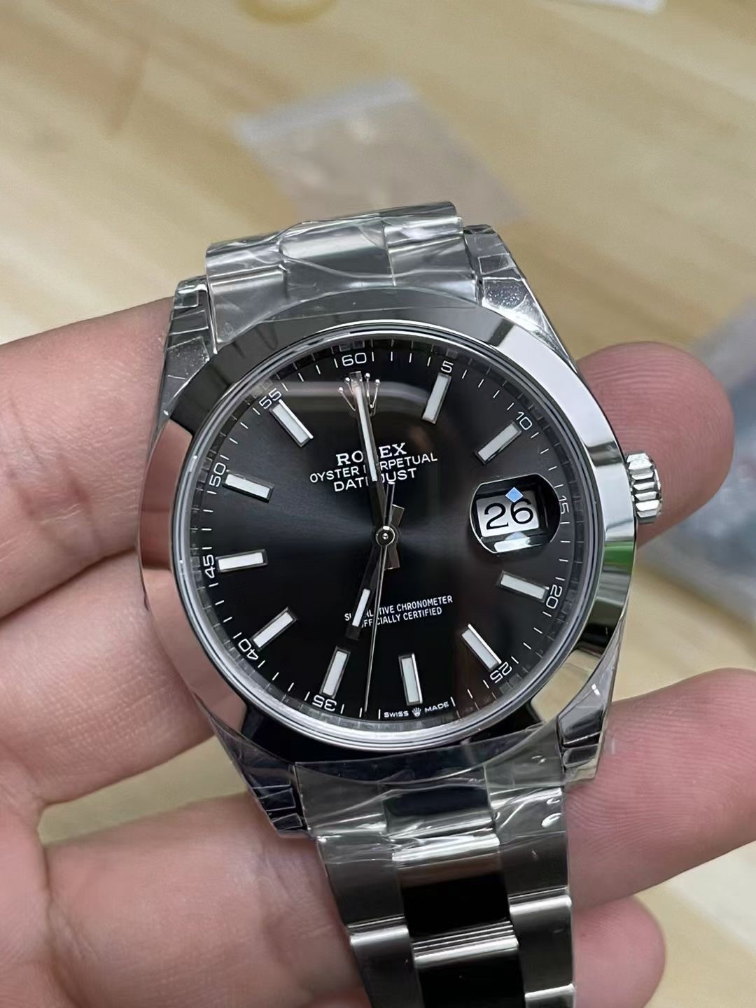 VSファクトリー製 ロレックス デイトジャスト 41mm サンバースト スレート文字盤 スムースベゼル オイスターブレスレット (126300) 1:1スーパークローン - 丹東3235ムーブメント搭載