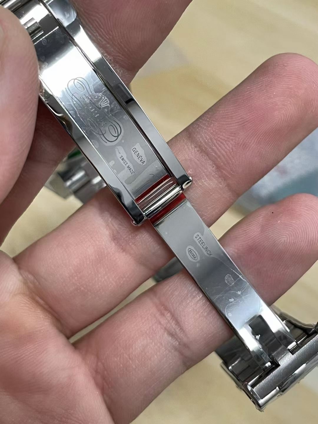 プレミアムな904Lスチール構造: ケース全体、ベゼル、およびオイスターブレスレットはハイグレードな904Lステンレススチールから鍛造されており、オリジナルと全く同じ重量、信じられないほどの日常の多様性、および優れた耐腐食性を提供します。ブレスレットには、便利な5mmのイージーリンク快適拡張システムを備えた非常に安全なフォールディング オイスタークラスプが装備されています。