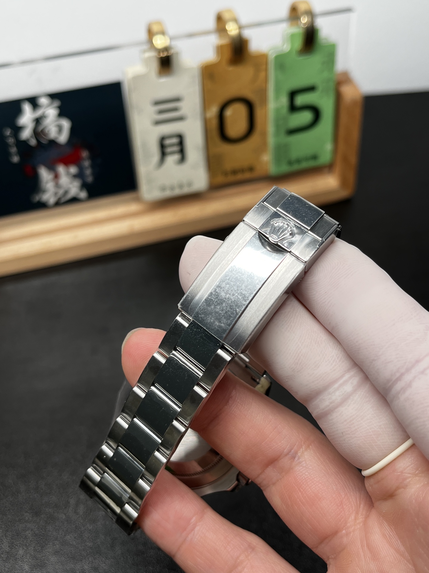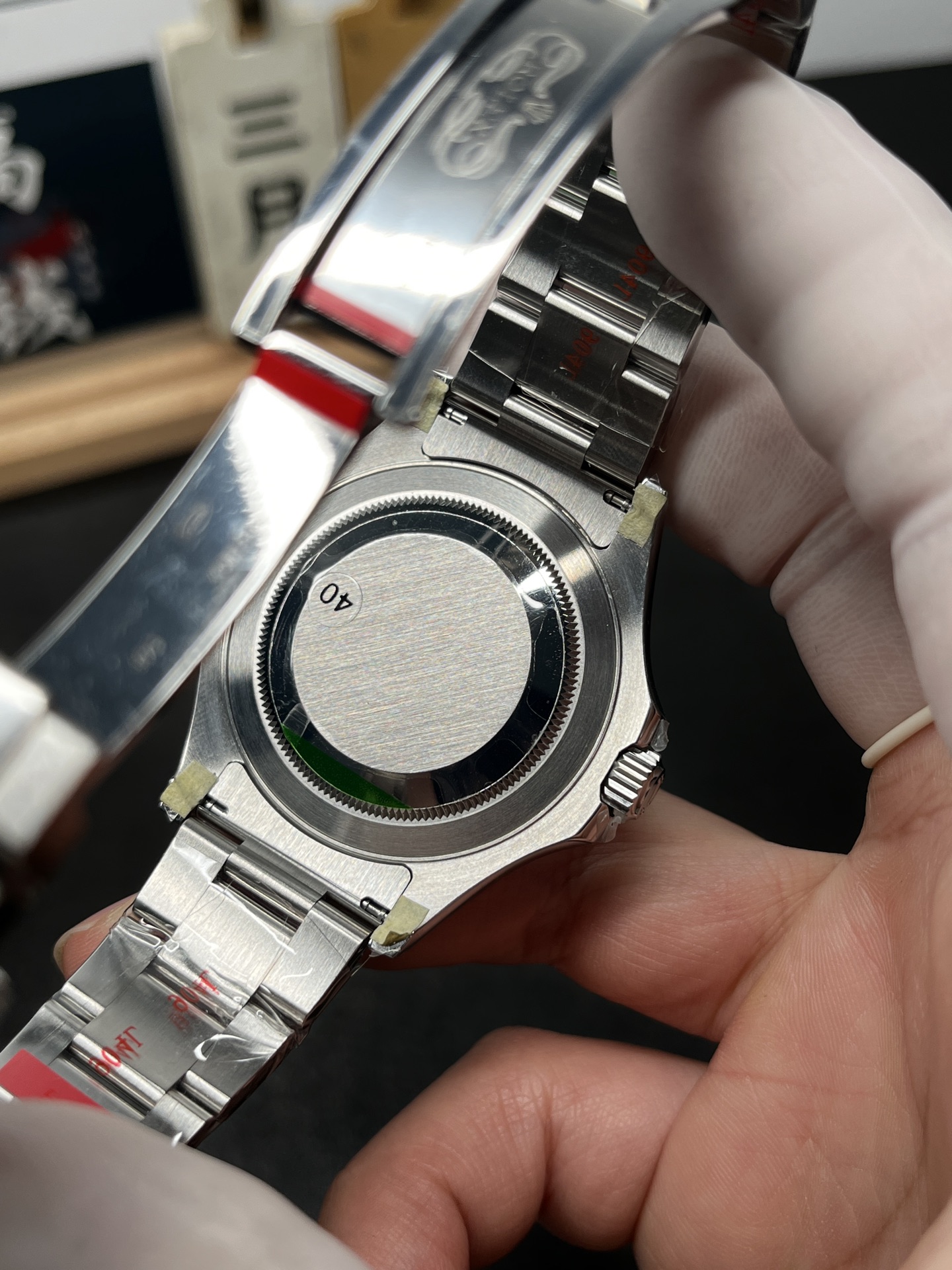 豪華なオイスターブレスレット: サブマリーナーに見られる完全にサテン仕上げのブレスレットとは異なり、ヨットマスターの904Lオイスターブレスレットは高度に研磨された中央リンクを特徴としています。これにより、時計のドレッシーでラグジュアリーな魅力が大幅に向上し、40mmケースのポリッシュされた流れるようなラグと完全に一致します。