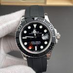 文字盤: ブラック(ホワイトゴールド縁取りの夜光インデックスと特徴的な白い「YACHT-MASTER」テキスト)