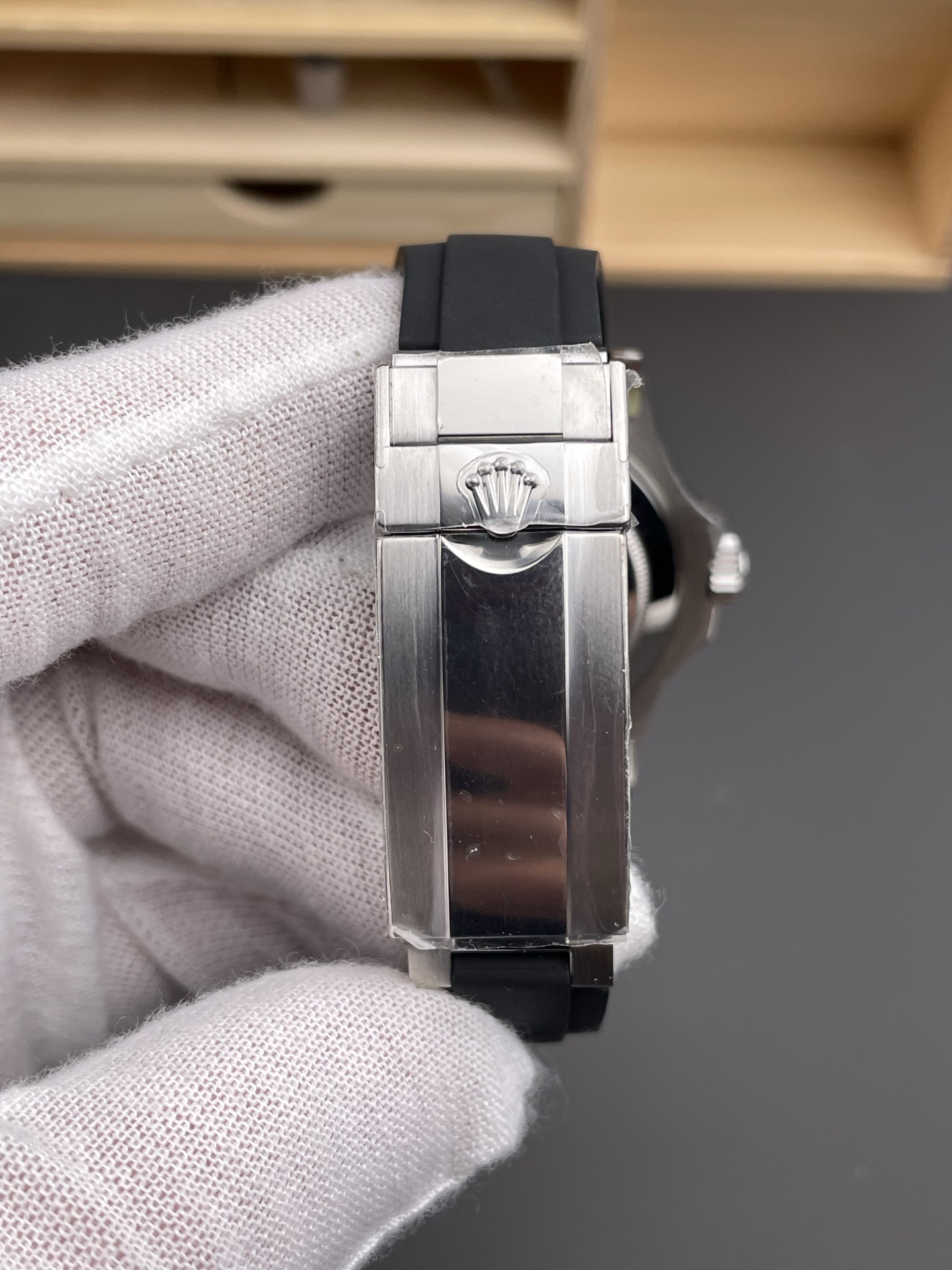 革新的なオイスターフレックス ストラップ: VSFは画期的なオイスターフレックス ブレスレットを完璧に複製しました。高性能なブラックエラストマーでオーバーモールドされた柔軟なチタンとニッケル合金のブレード(芯材)を特徴とし、金属製ブレスレットの堅牢な耐久性とラバーの最高の快適さを提供します。最高の通気性のために、下部に特許取得済みの縦方向のクッションシステムが含まれています。