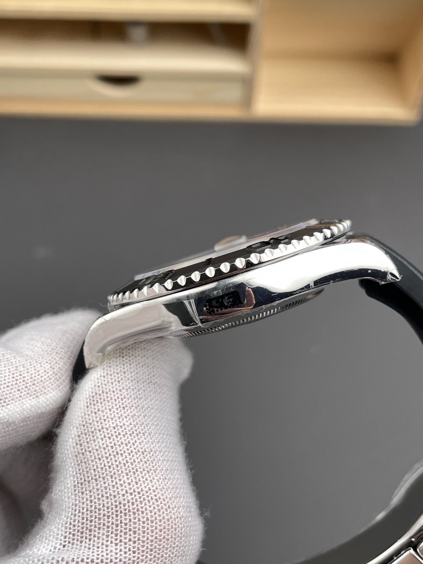 ベゼル: 両方向回転式 マットブラック セラミック(セラクロム)(ポリッシュ仕上げの立体数字)