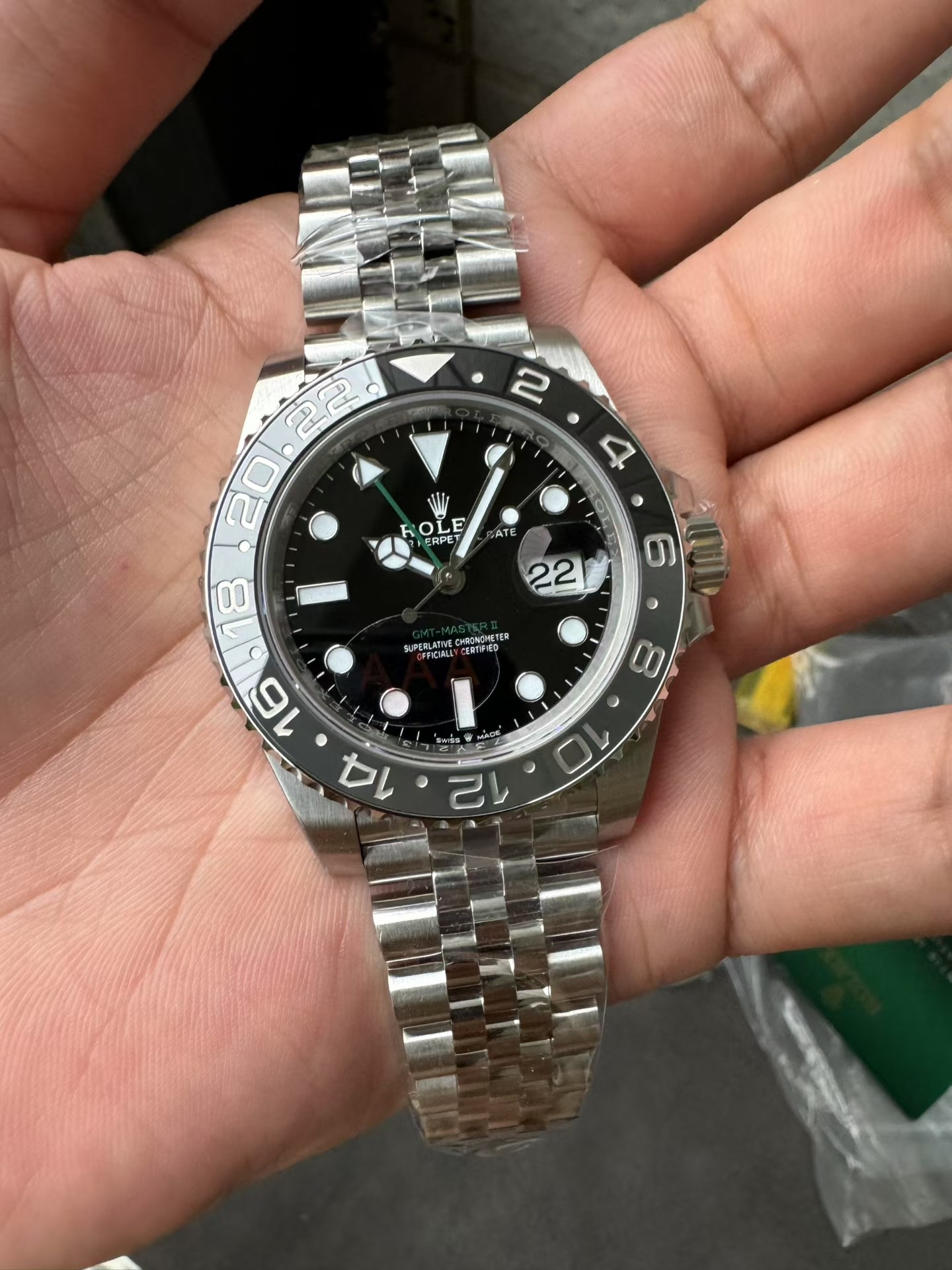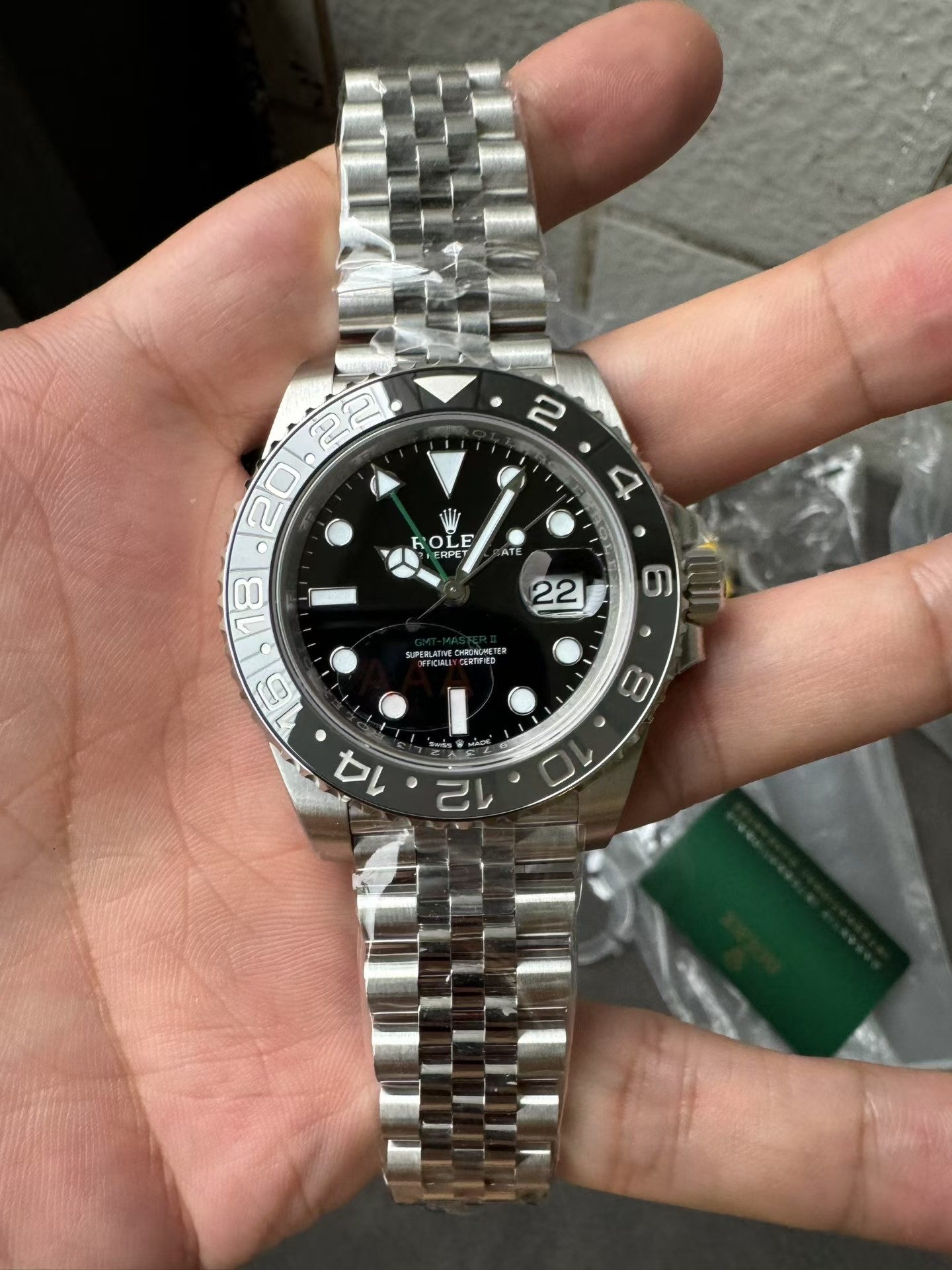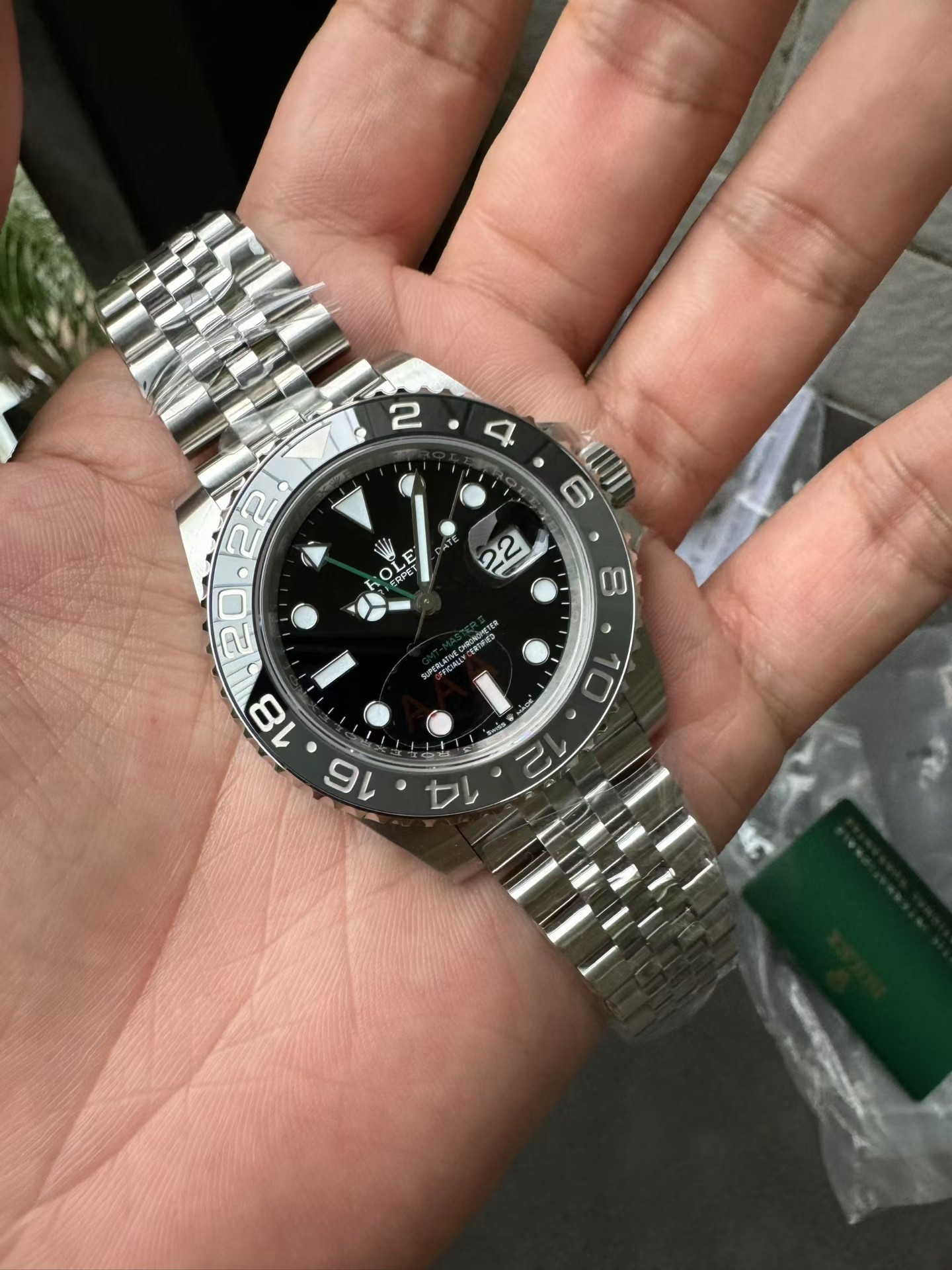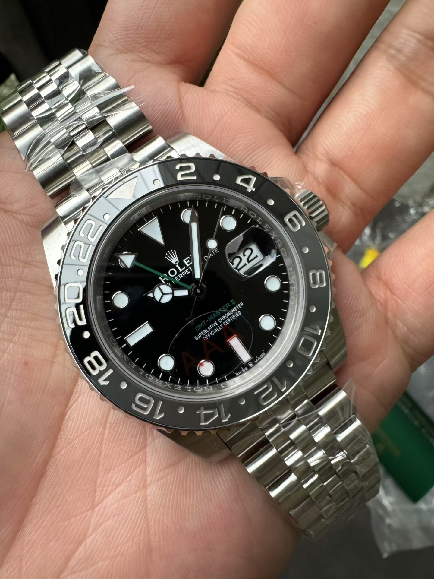 コレクターの間で「ブルース・ウェイン」として広く認知されているVSファクトリー製のGMTマスターII 126710GRNRは、1:1レプリカの絶対的な最高峰を表しています。印象的なグレーとブラックのセラミックベゼルを備え、エレガントなジュビリーブレスレットを装着したこのモデルは、非常に評価の高い丹東製3285(丹東3285)ムーブメントを搭載しています。実機を用いた綿密なリバースエンジニアリングにより、VSファクトリーは完璧な2トーンベゼルの色の境目、正確なケース形状、そしてスーパークローン市場の究極の基準となるプレミアムなパーツ仕上げを実現しました。
