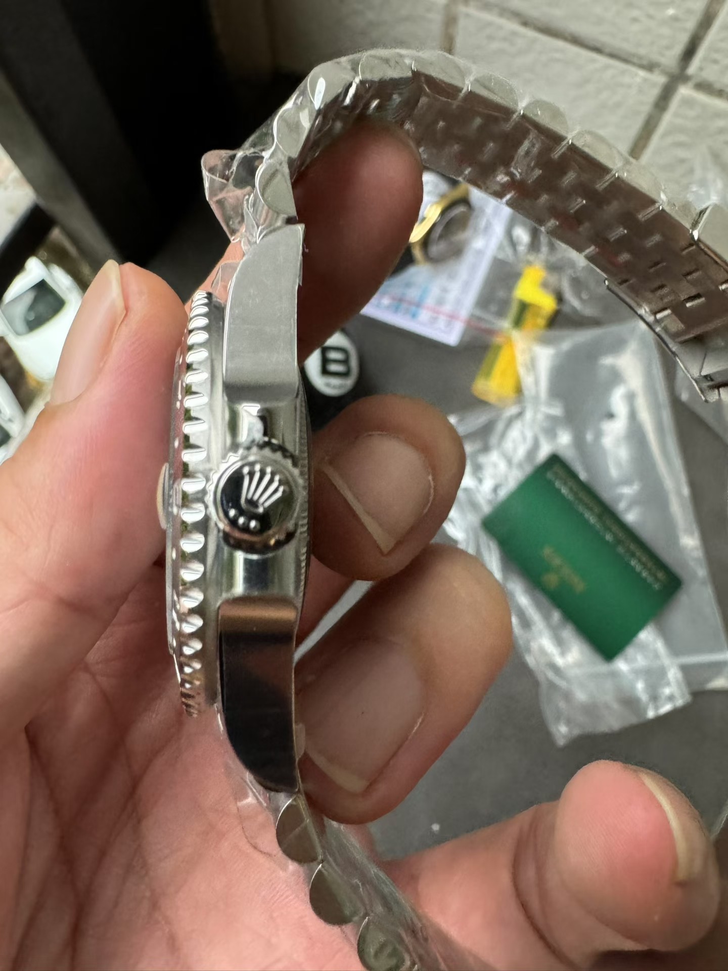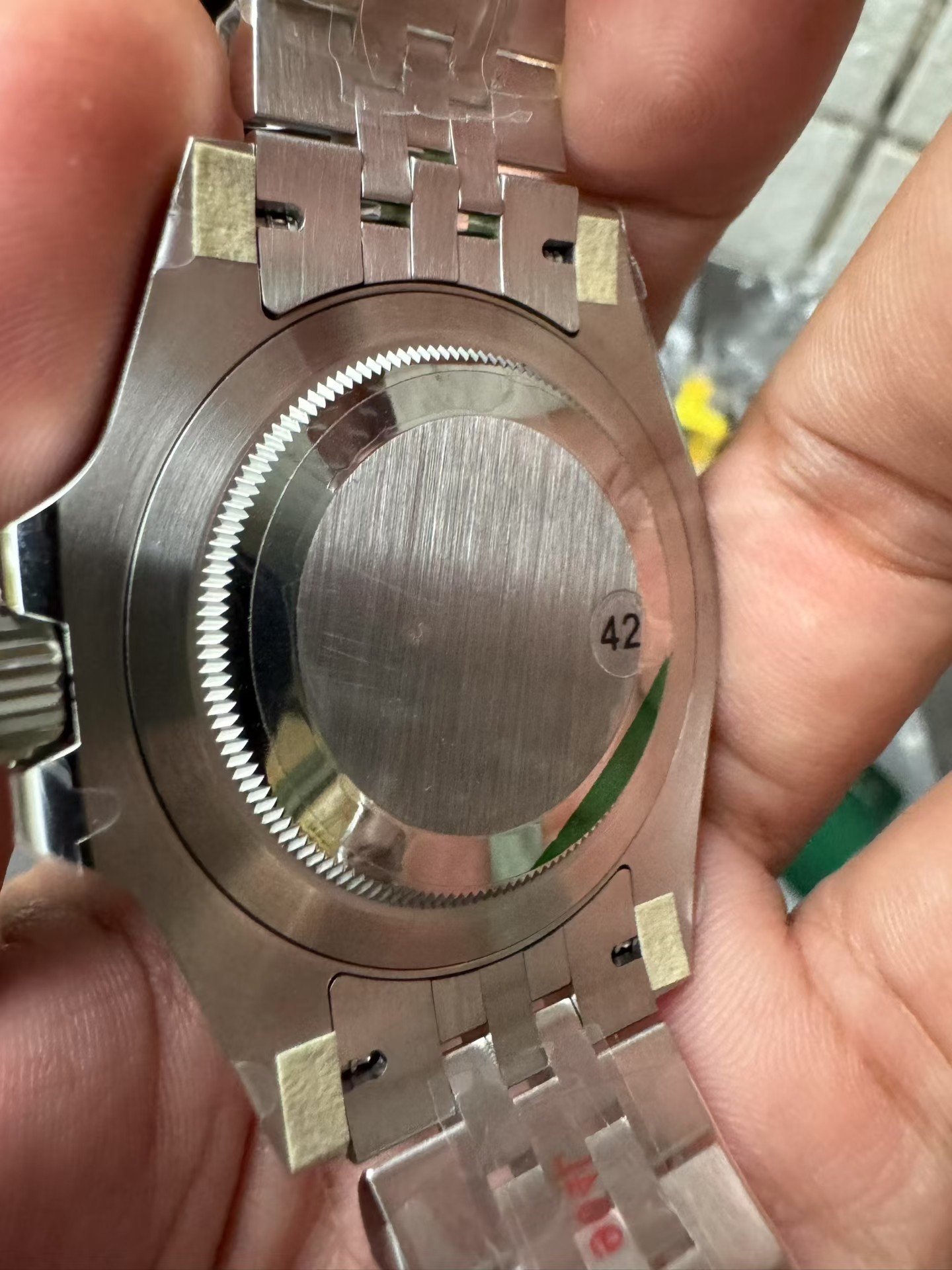 シームレスなベゼルの境目と精密加工: グレーとブラックのセラミックインサートは、低ランクの市場品に見られるようなはっきりとした線のない、完璧な色の移行を実現しています。ベゼルの歯車溝はオリジナルの深さに合わせて精密に加工されており、実機同様の爪の感触を難なくパスします。