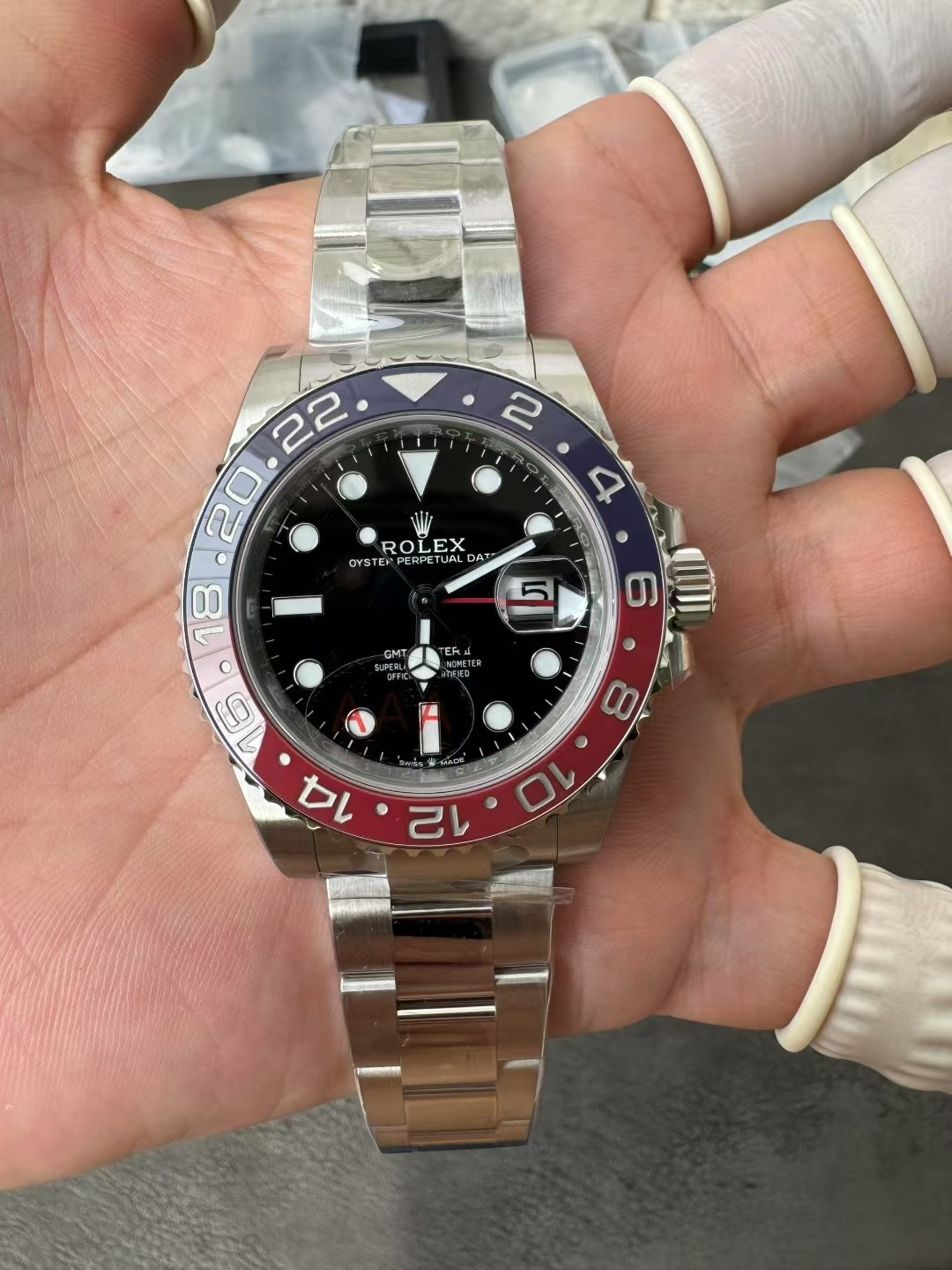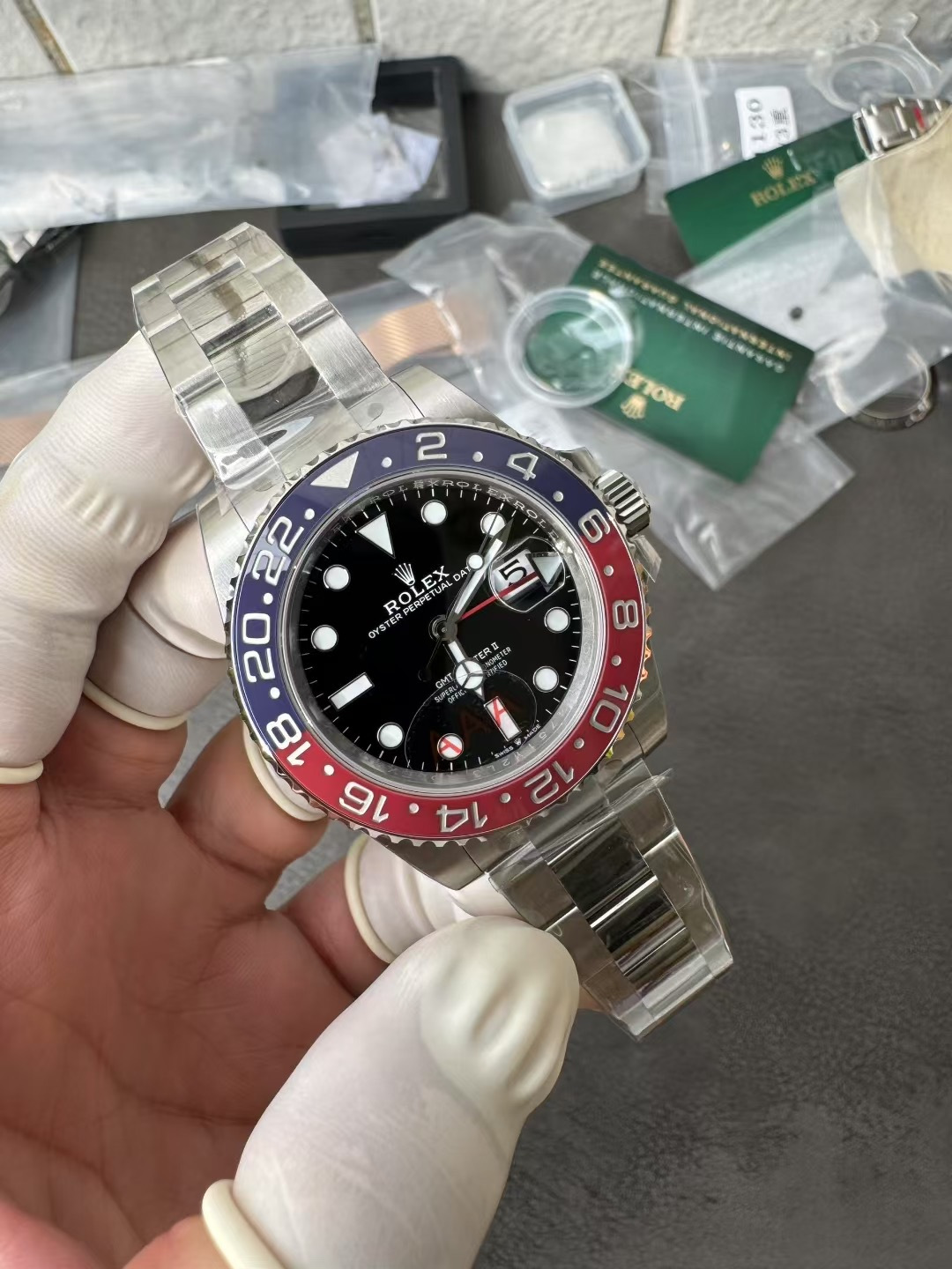 世界中で「ペプシ」として知られるVSファクトリー製のGMTマスターII 126710BLROは、市場の1:1スーパークローンの絶対的な最高峰を表しています。クラシックな3連オイスターブレスレットを装着し、業界をリードする丹東製3285(丹東3285)ムーブメントを搭載するこのモデルは、正しい逆回しの日付早送り機能を備えています。実機を用いた綿密なリバースエンジニアリングにより、VSファクトリーは画期的なV3セラミックベゼル、正確なケース形状、そして市場の他のすべてのバージョンを完全に凌駕する比類なきパーツ仕上げを実現しました。