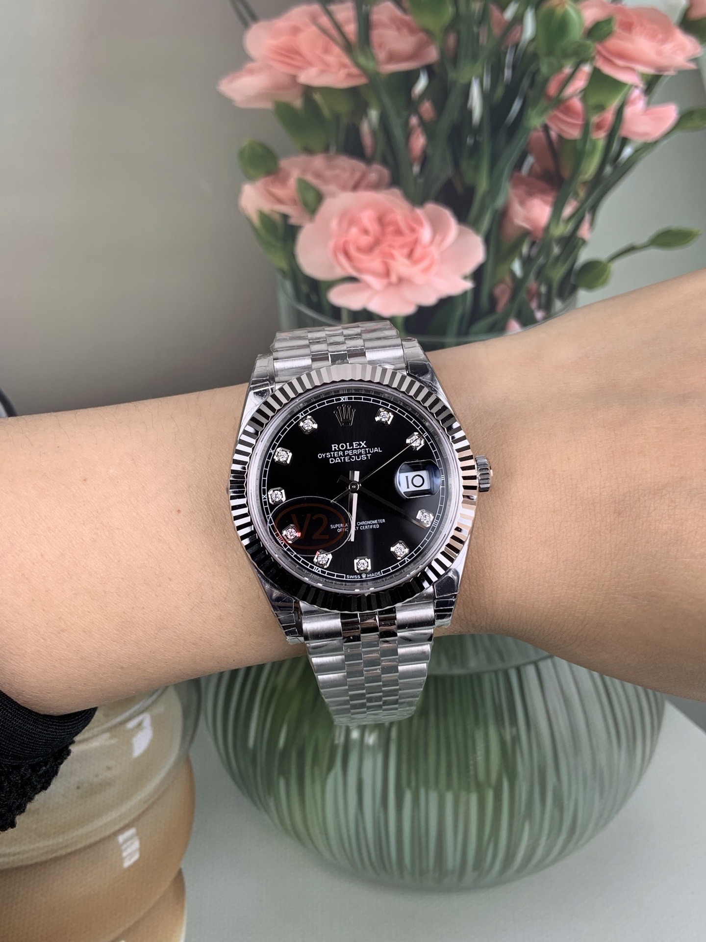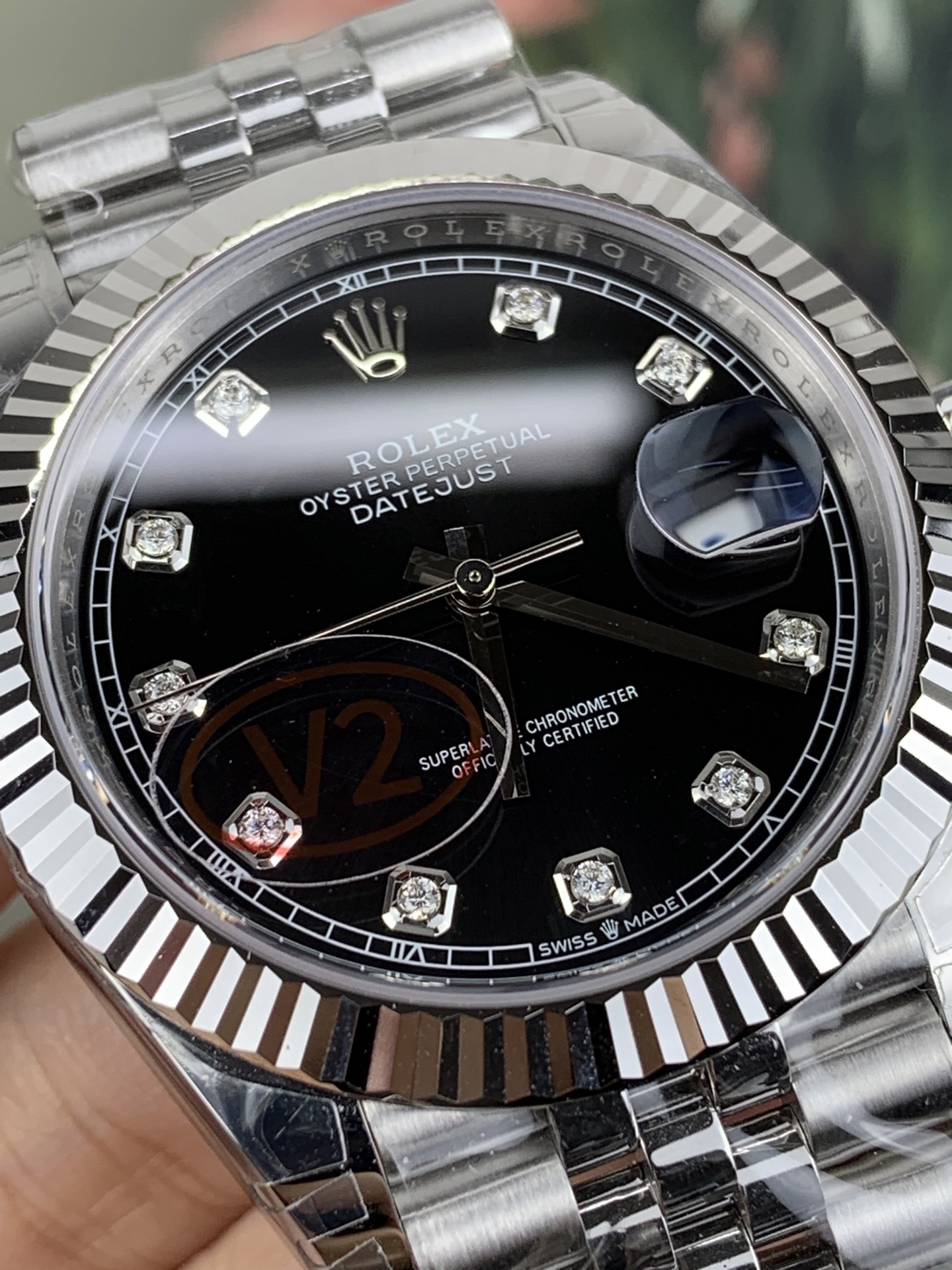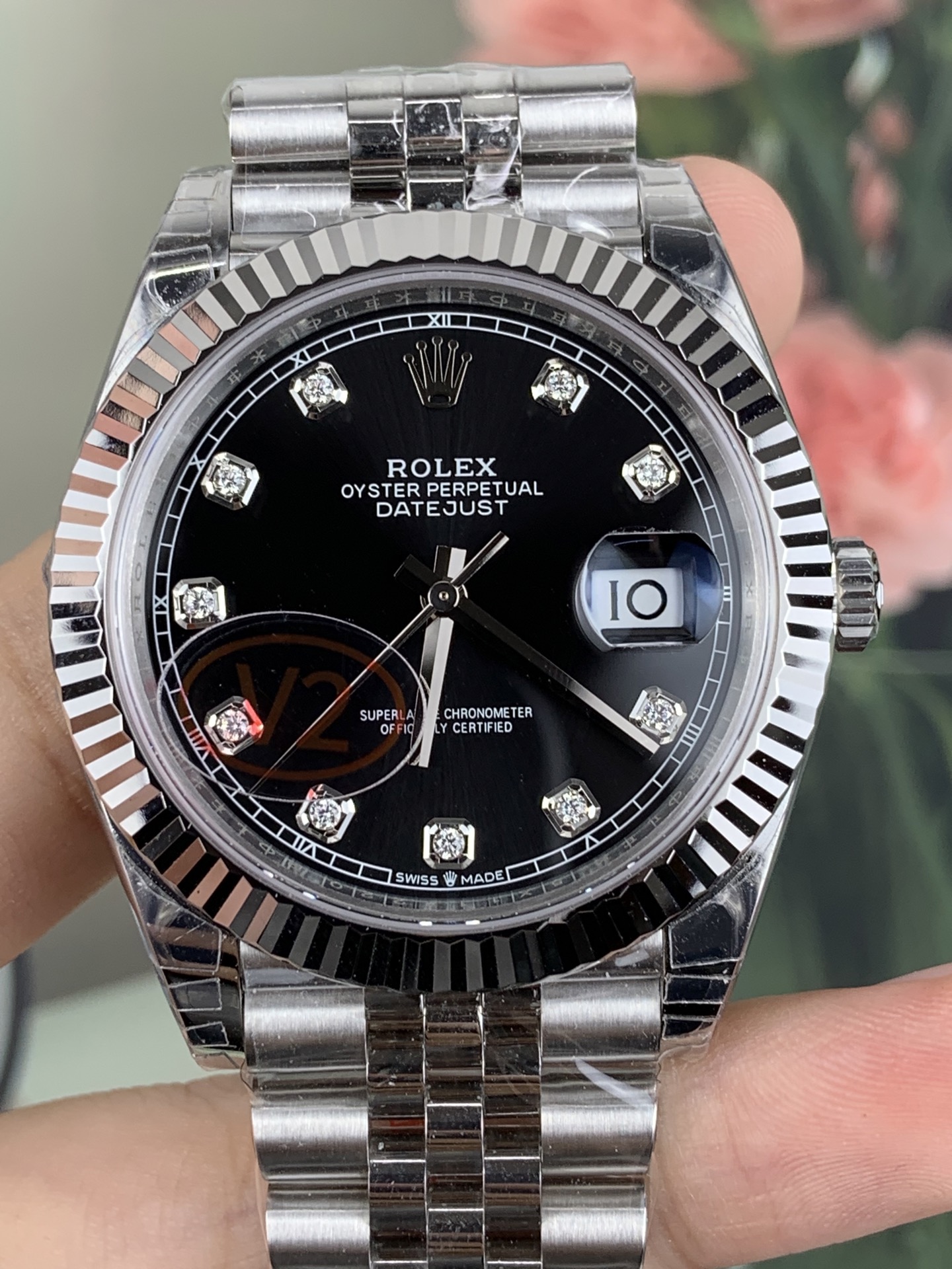 VSファクトリー製 (V2) ロレックス デイトジャスト 41mm ディープブラック ダイヤモンド文字盤 フルーテッドベゼル ジュビリーブレスレット (126334) 1:1スーパークローン – 丹東3235ムーブメント搭載